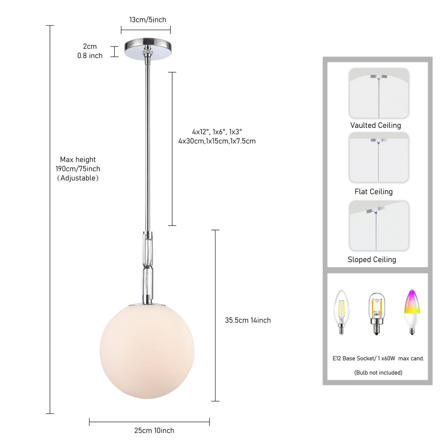 Bulbs: 1x A19 E26 60W, Dimmable