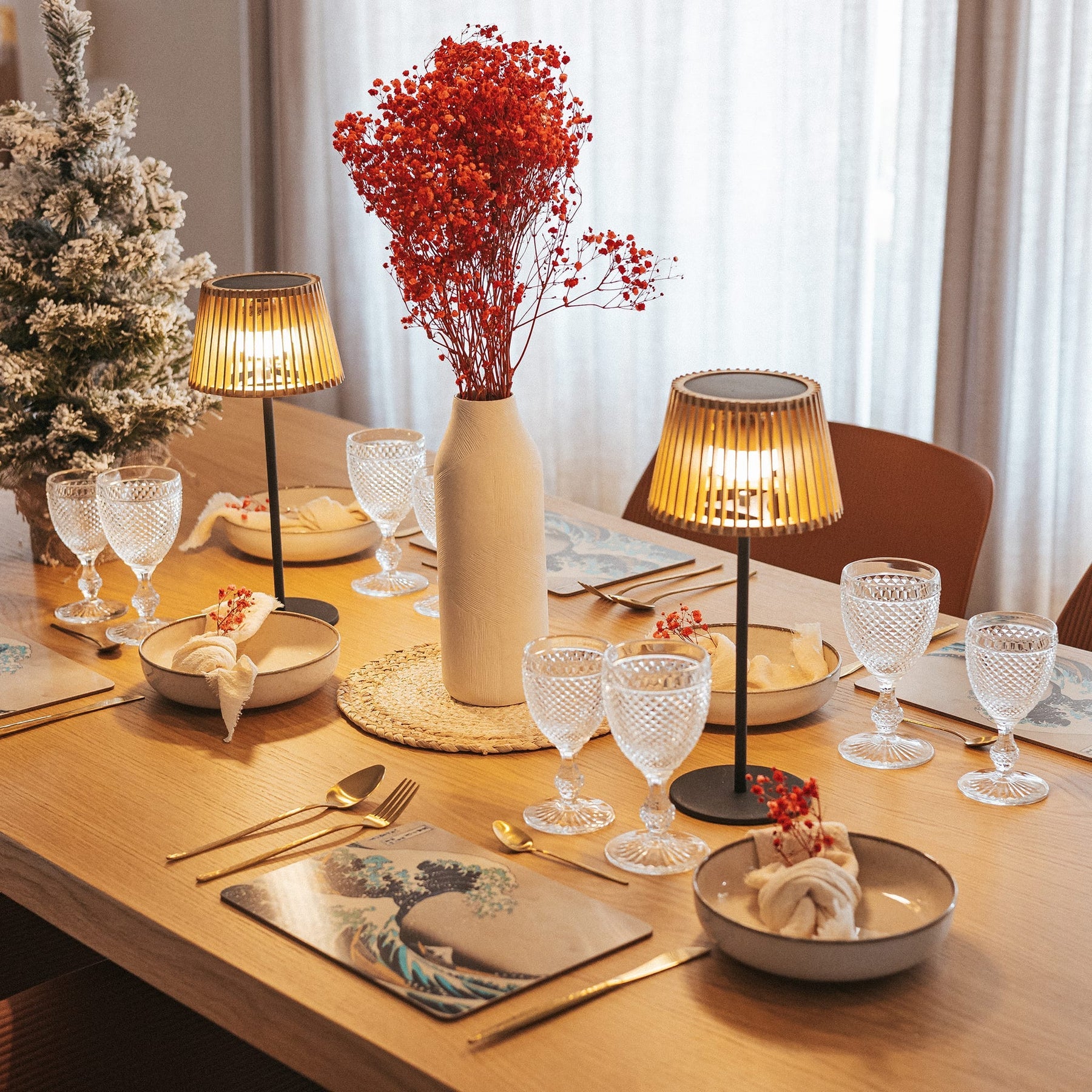 Enhance your outdoor living space with the Okinawa Table Lamp by Newgarden, a perfect fusion of modern design and innovative technology. This modular table lamp, with an adjustable height from 23 cm to 36 cm, adapts to your needs, making it easy to create the ideal ambiance for any occasion. Designed for the Canadian climate, the Okinawa Lamp offers not just beauty but durability, thanks to its premium bamboo finish and weather-resistant metal construction. Whether you're hosting an intimate dinner or relaxing on your patio, its warm 3000K light at 350 lumens casts a cozy glow that elevates the atmosphere.