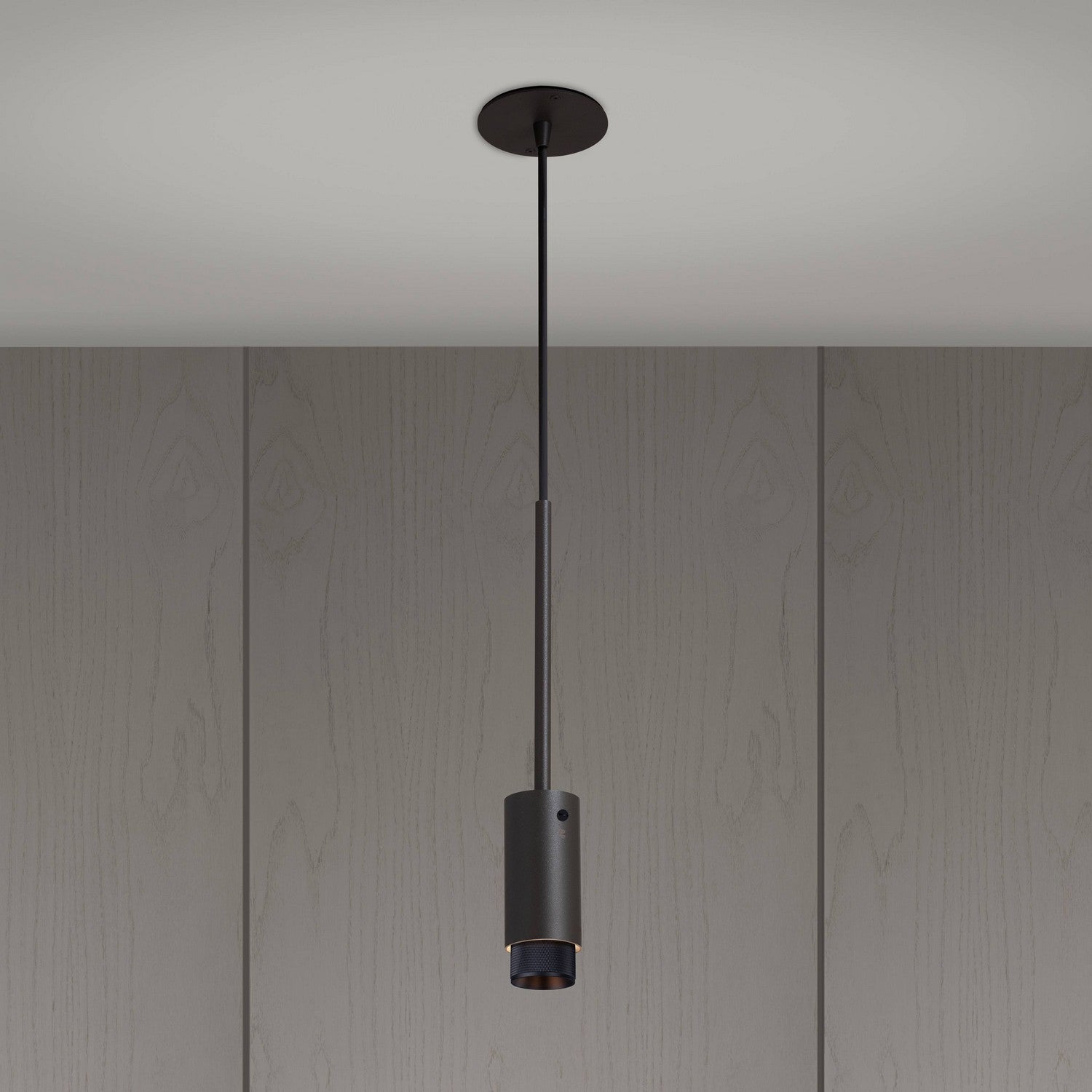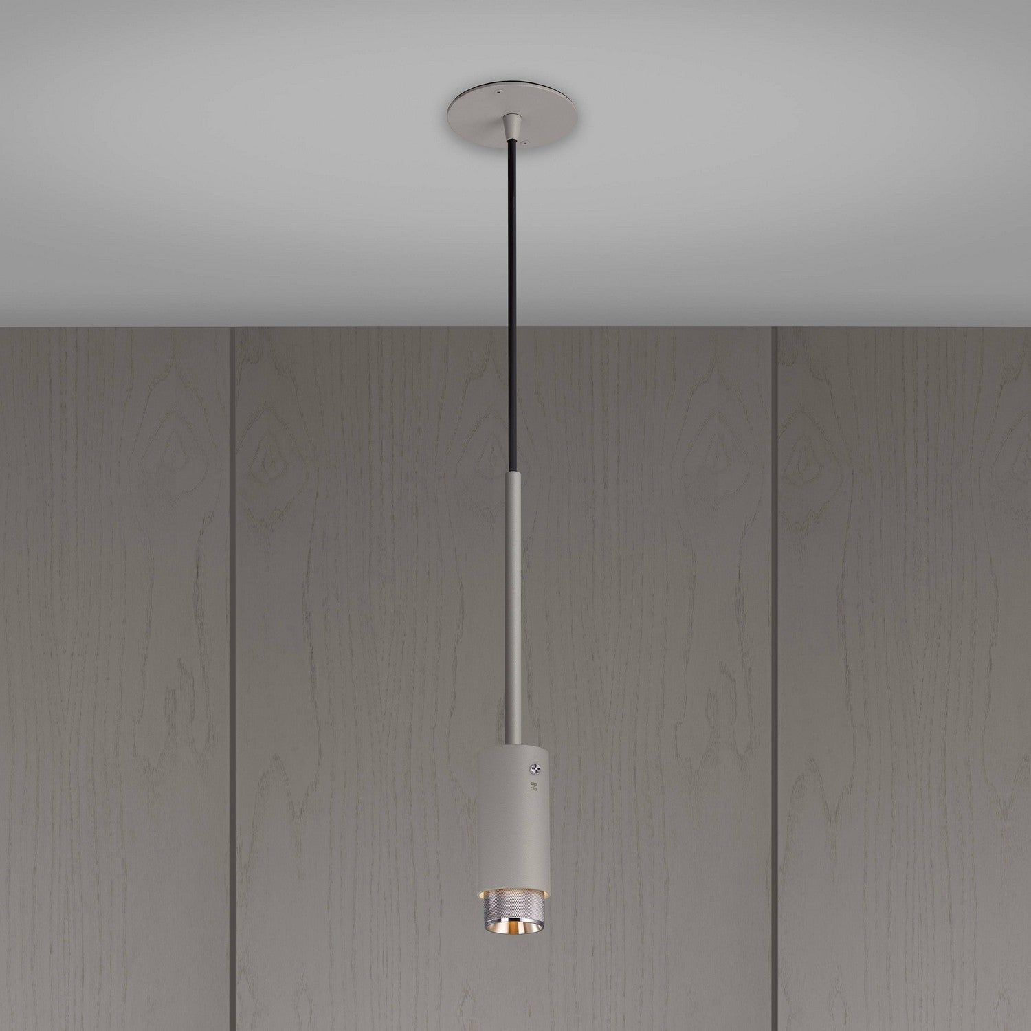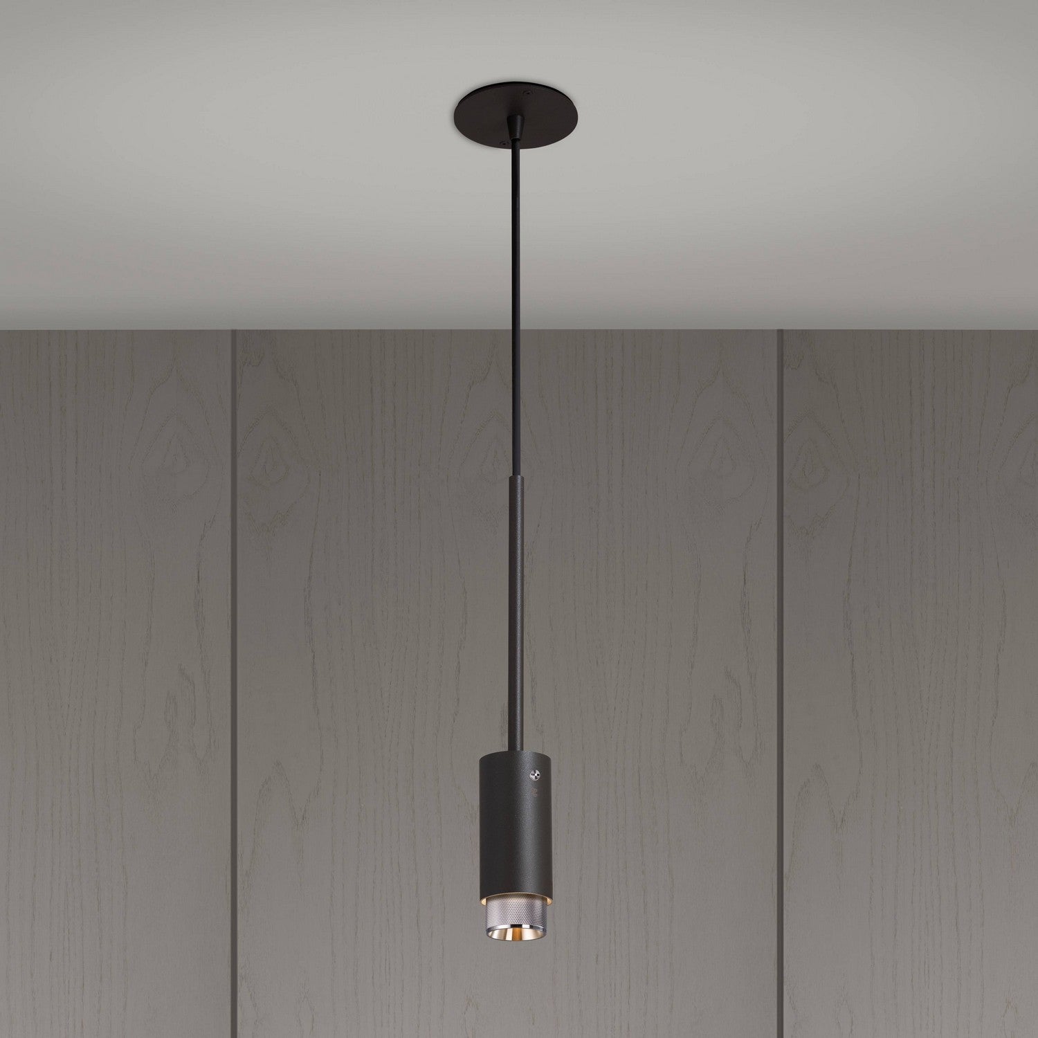 UN Suspension Projecteur en métal recouvert de poudre de graphite avec des détails en laiton massif.