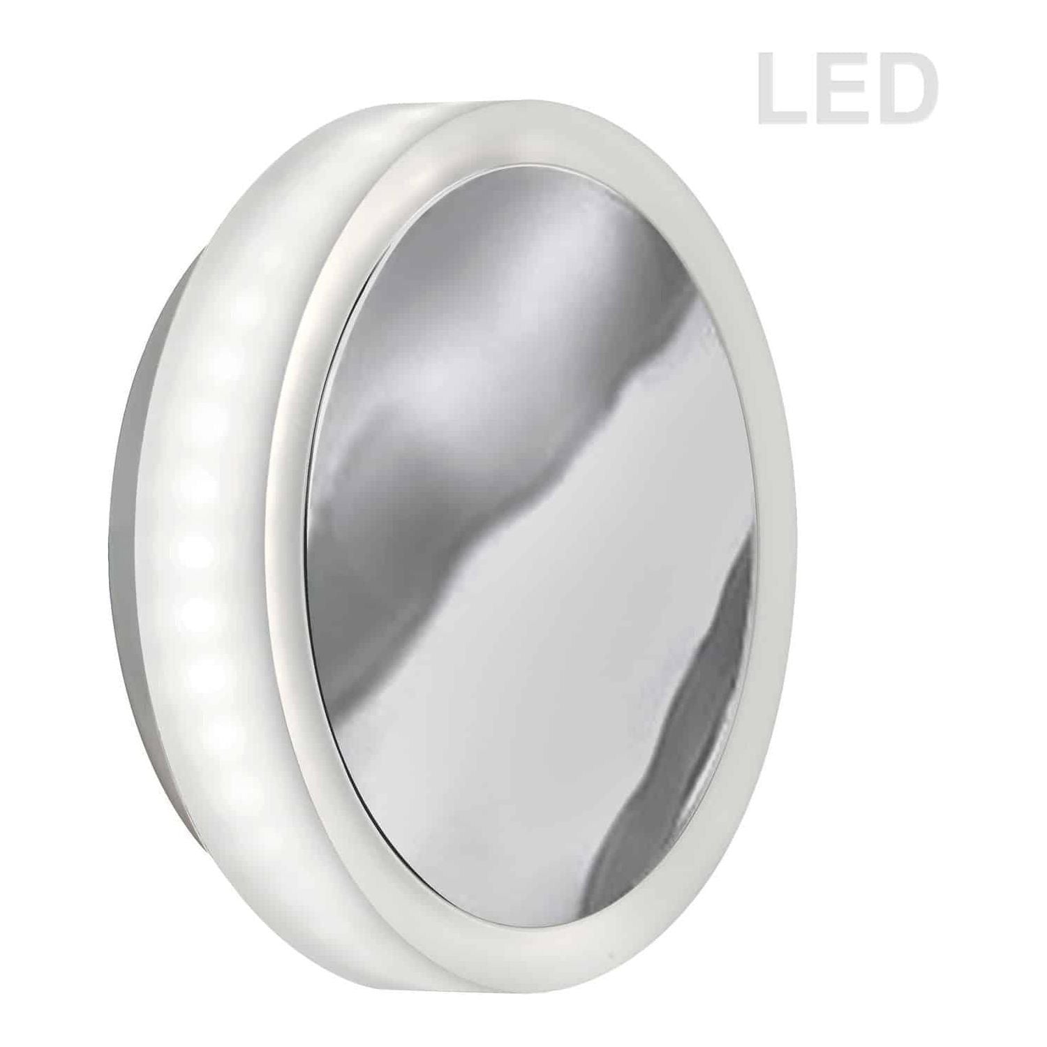 Topaz LED Wall Sconce — a refined study in form and light that elevates contemporary interiors with a subtle, sculptural presence. The brushed metallic center plate sits set within a clean white diffusing ring, producing a soft, even glow that reads as both functional illumination and decorative detail.