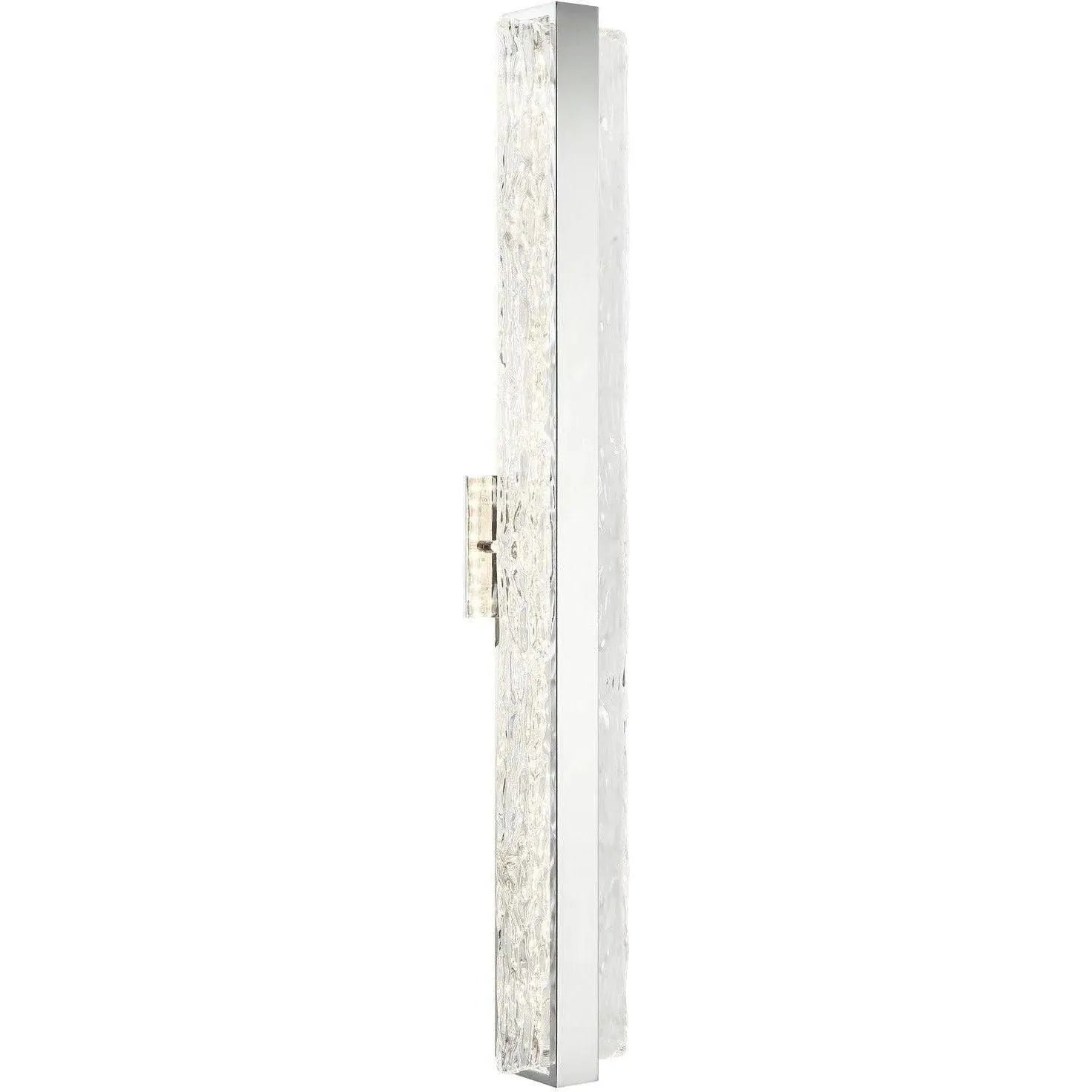 Niagara LED Vanity by Matteo Lighting — a sculptural wall light that reads like a column of cascading water. The textured, ice‑like glass face diffuses integrated LEDs for an even, luminous wash while a slim polished chrome spine anchors the composition for a refined modern silhouette.