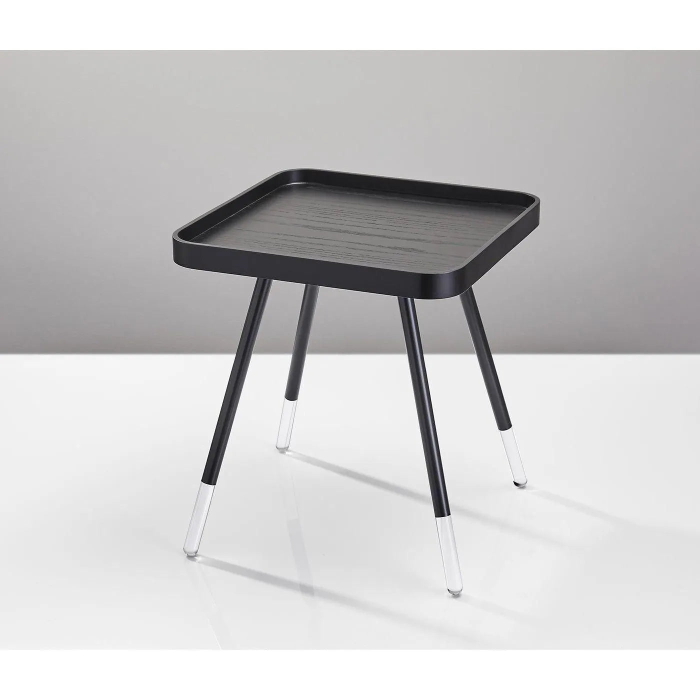 Material: Pieds en métal noir avec accents en acrylique transparent