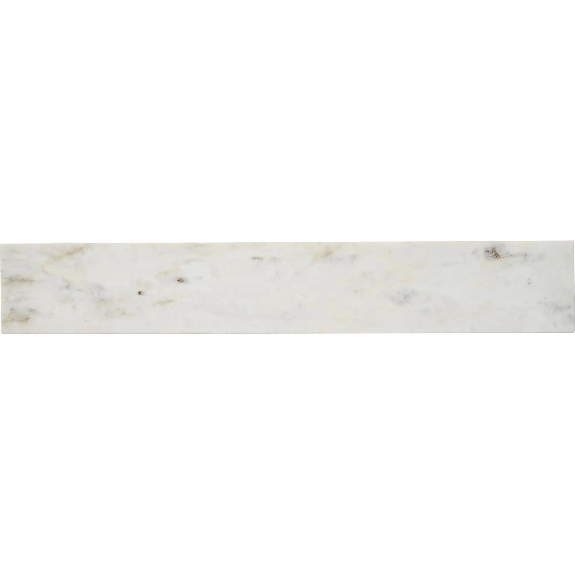 L'accessoire utilitaire subit une transformation étonnante dans cette conception de plateau. Servant de trouvaille fonctionnelle dans la cuisine, le bureau à domicile ou le spa à domicile, sa construction en marbre blanc naturel offre une riche qualité à l'espace dans lequel il se trouve. À 32 pouces de largeur et cinq de profondeur, sa capacité à fournir un but au milieu de l'activité quotidienne est forte.