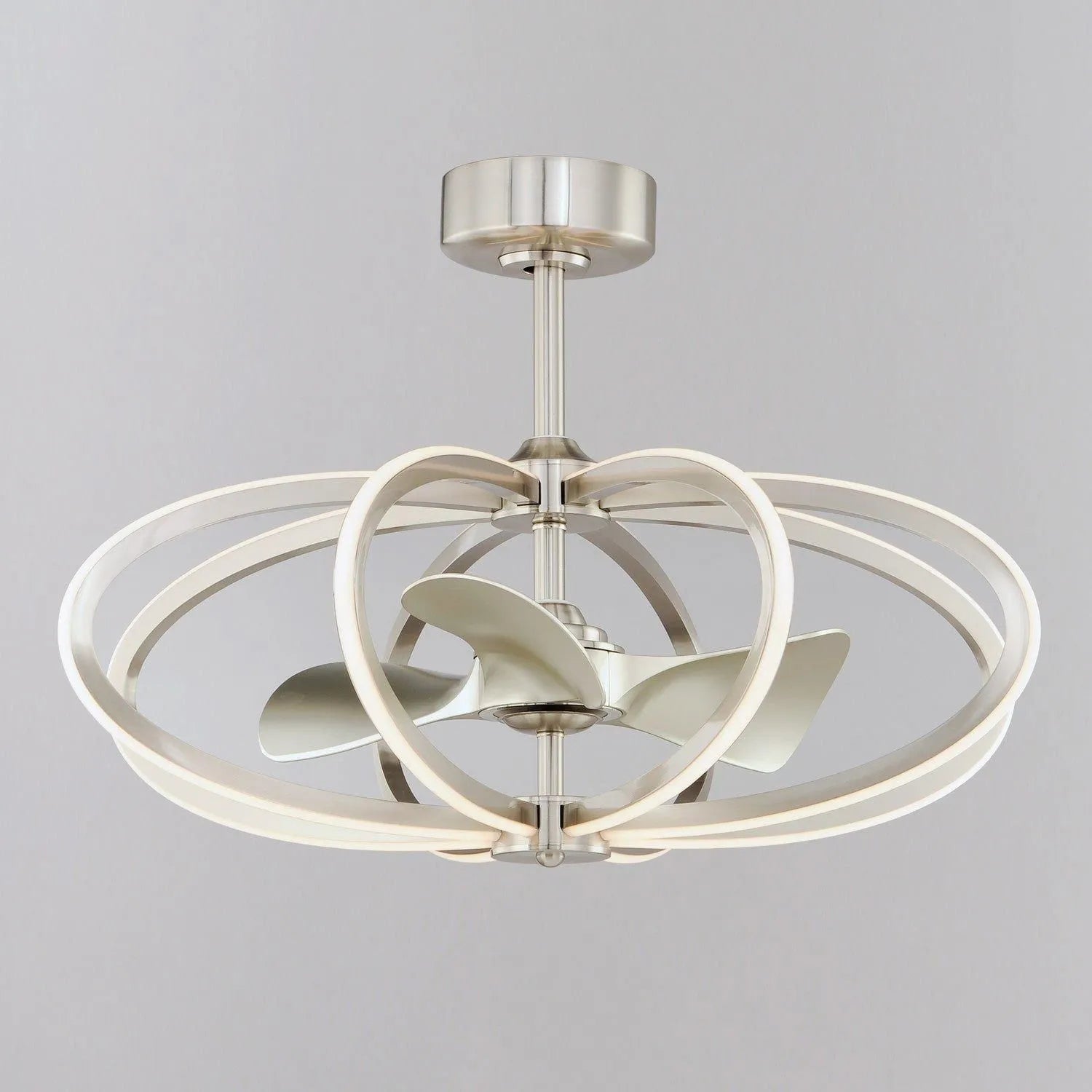 Le Solstice Fandelight abrite une connexion Wi-Fi Ventilateur dans une cage de canaux en nickel satiné astucieusement courbés pour créer une forme classique en lumière. Les fonctions de contrôle intelligent exploitent à la fois le Ventilateur et la lumière elle-même. Ajustez la température de couleur et l'intensité lumineuse à l'aide de la télécommande fournie ou des applications Smart Home sans utiliser de passerelle.