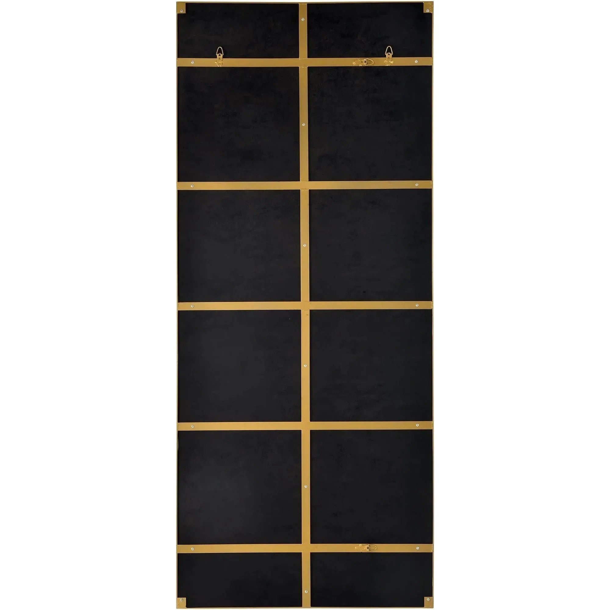 Un cadre en fer au fini laiton antique apporte une qualité chic à ce design classique de miroir au sol. Situé dans la chambre à coucher du milieu du siècle, il reflétera la beauté sous tous les angles. Associez-le à des tons vifs pour un impact ultime.