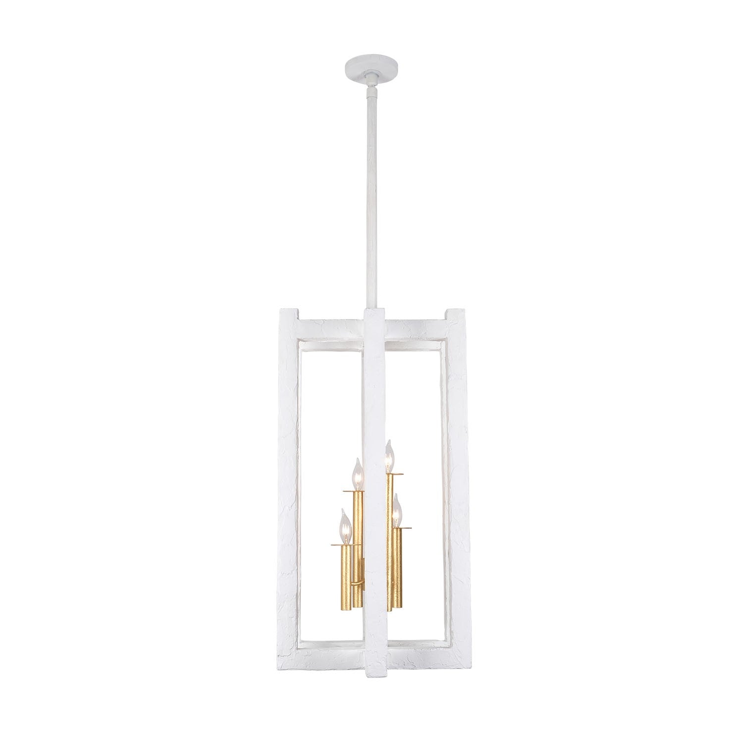 Finish: Soft Gold and White Material: Acier et plâtre Dimensions: 18" W x 18" L x 34" H Weight: 48 lbs. Canopy Size: 5.5" x 0.75" Bulbs: 4x Candelabra E12 Candelabra 40W, Dimmable Wire: 156" Collection: Duo