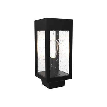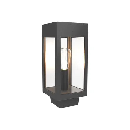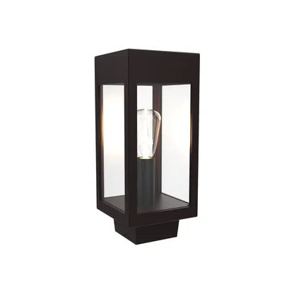 Crafted from powder‑coated metal with four clear glass panels, the fixture showcases an exposed single lamp that delivers direct, architectural illumination while revealing thoughtful craftsmanship. Its compact footprint makes it ideal where scale and restraint are required.