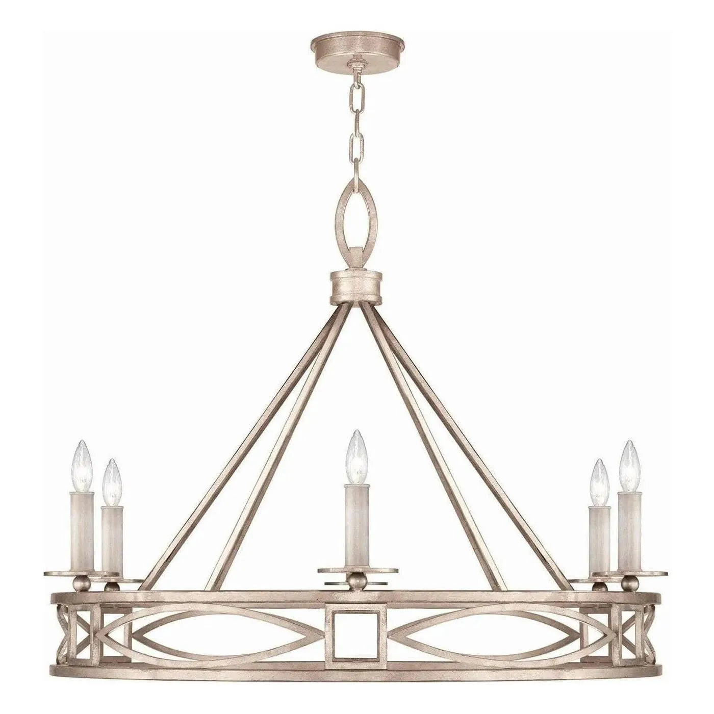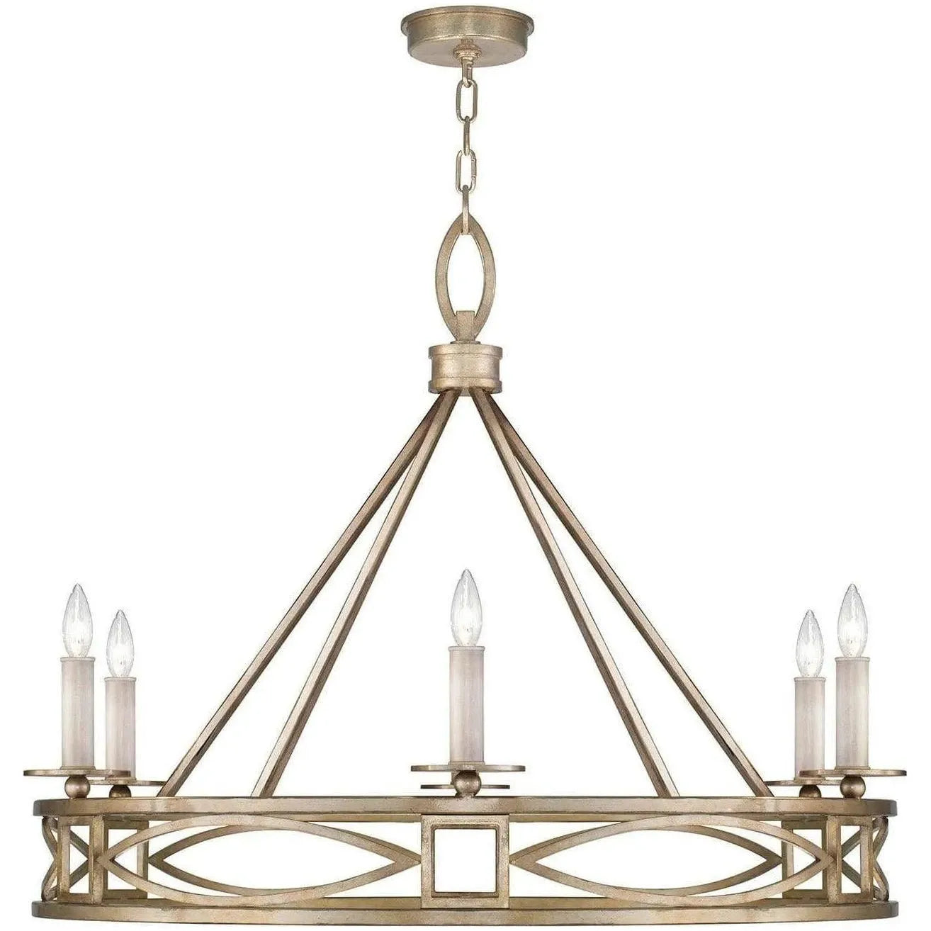 Cienfuegos 37-Inch Six Light Chandelier—a refined statement piece by Fine Art Handcrafted Lighting that balances sculptural form with functional illumination. The 37" diameter open-frame ring and tapered support arms create an airy silhouette ideal for dining rooms, entryways, or vaulted spaces.