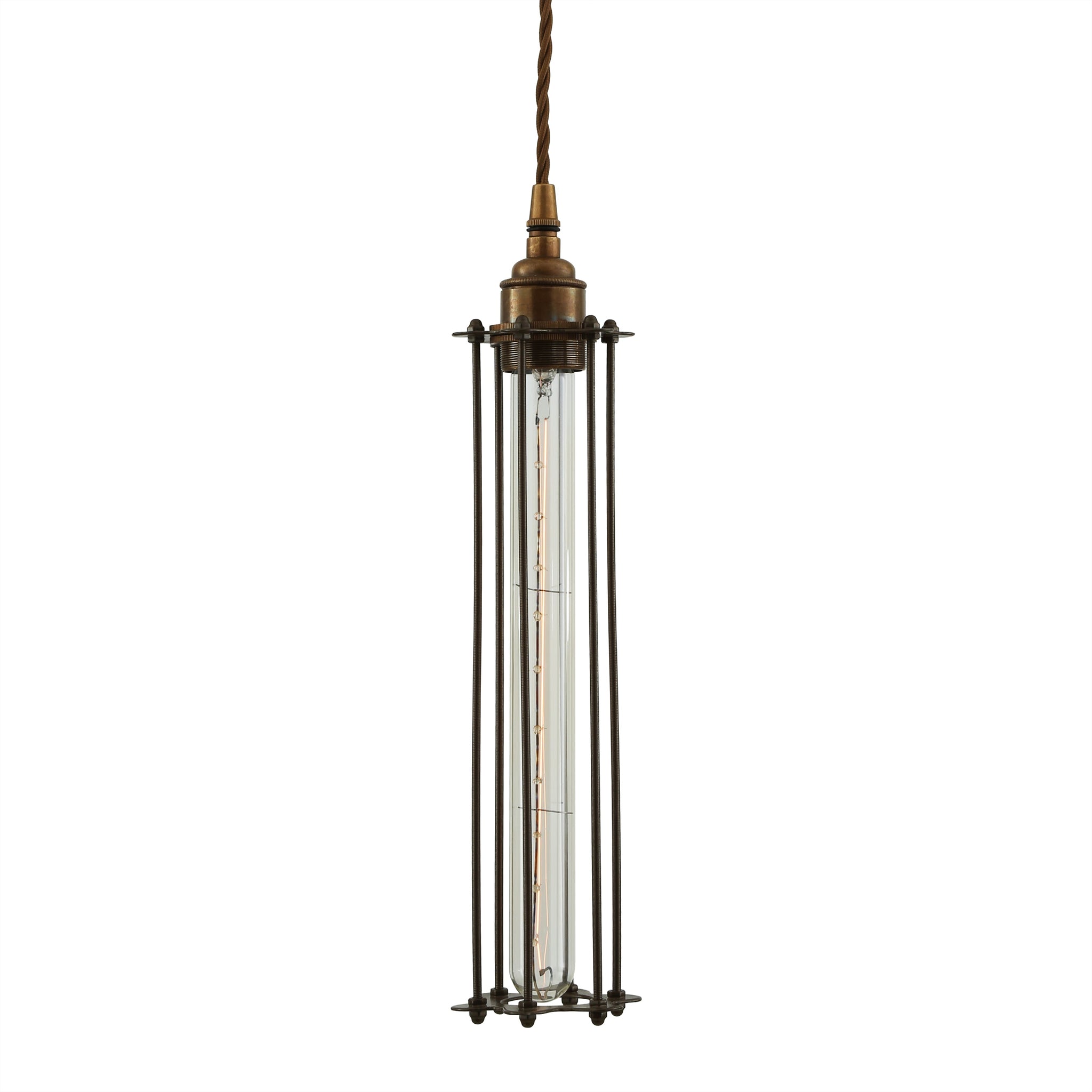 Beirut Pendant by Mullan Lighting is a study in refined industrial elegance: a slender, cage-like pendant that balances clean geometry with warm, aged-metal finishes to create an unmistakable focal point.