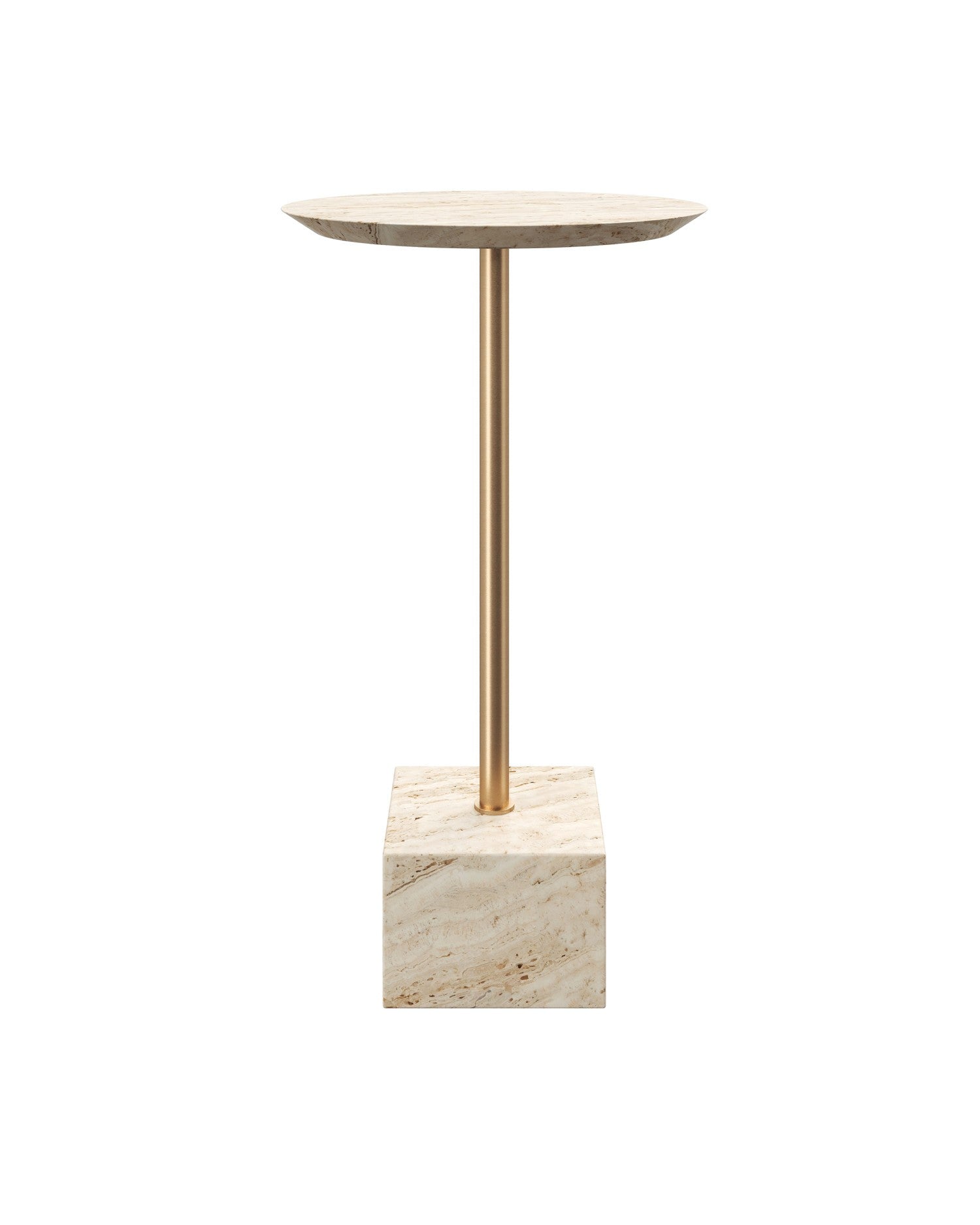 Véritable chef-d'œuvre de la nature, la table à boissons Prado tire sa personnalité du marbre Nero Saint Laurent, importé d'Italie, qui forme sa base et son plateau. Les stries de couleur sur la pièce en forme de bloc et le disque rond, reliés par une tige en métal au fini noir, sont d'une beauté artistique.