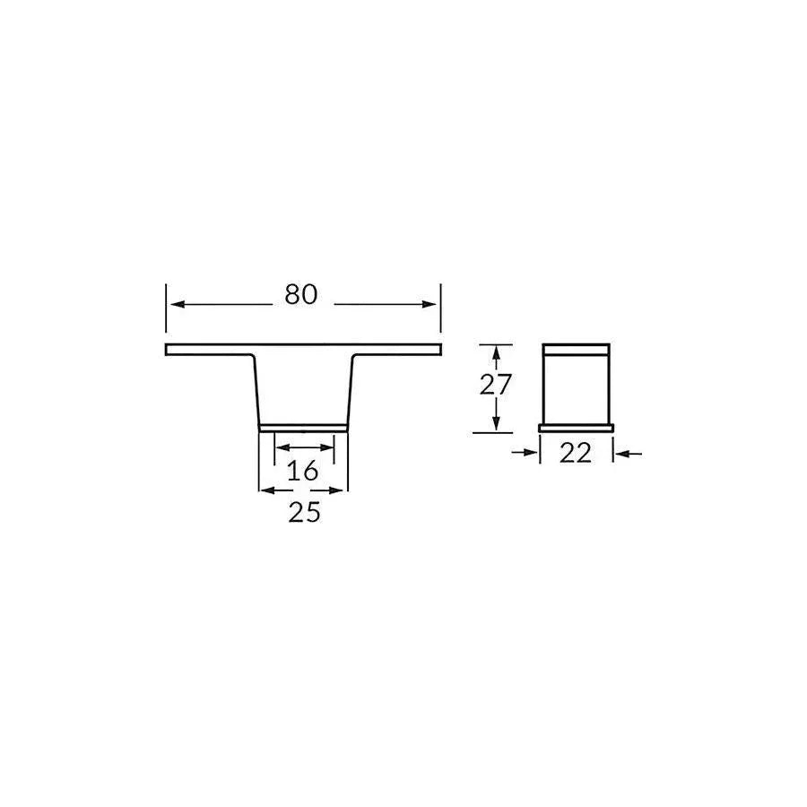 • Dimensions: Overall length approximately 80 mm with an overall height of 27 mm (center-to-center 16 mm option available in the Rocheleau catalog).
