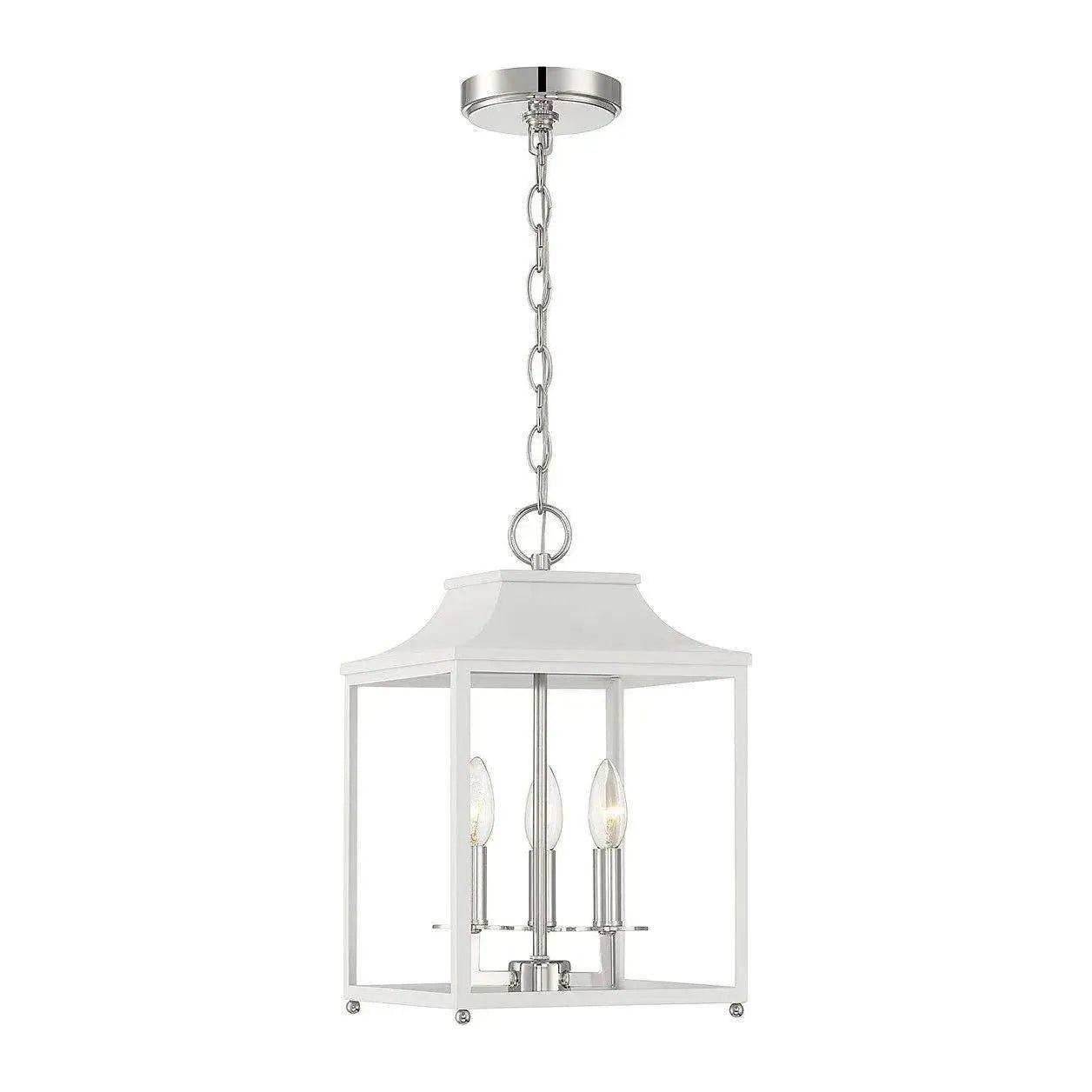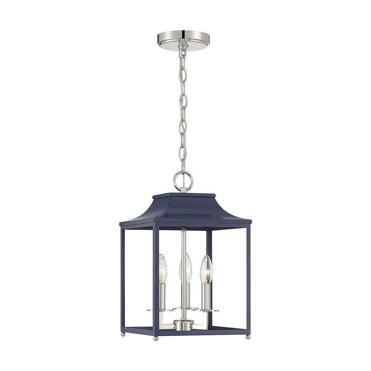 Meridian Pendant by Meridian Lite Trends translates classic lantern form into a refined, contemporary statement — a sculptural pendant that balances form, finish and function for elevated interiors. Clean lines, a gently pagoda-like top and clear glass panels reveal a polished metal interior and three candelabra lights, creating layered illumination with minimal visual weight.