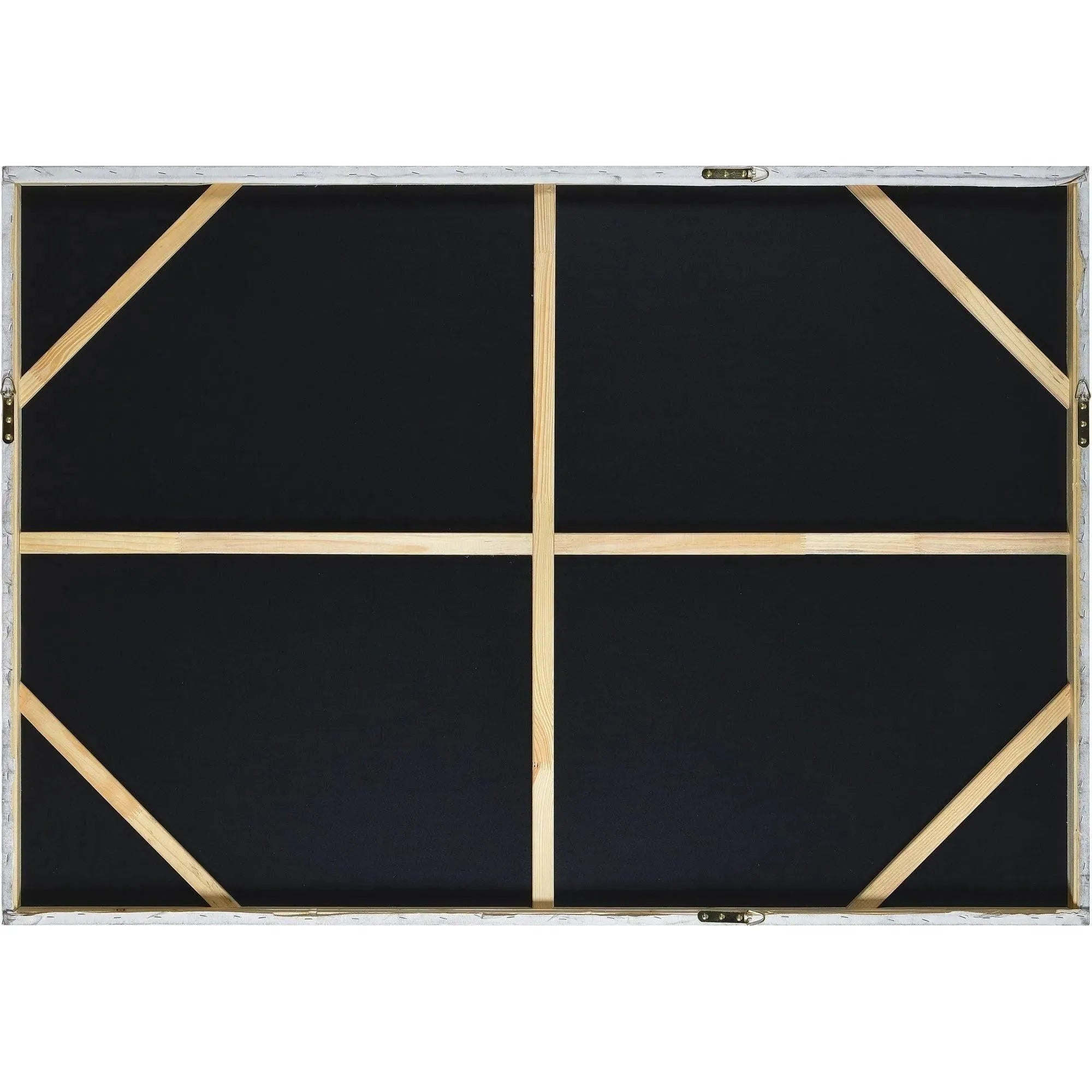 À première vue, cette œuvre d'art présente un design exquis semblable à du marbre, avec des tons proéminents de sarcelles, de bleus et de gris. Au deuxième coup d'œil, il dépeint la beauté implacable de voir la nature à travers une fenêtre trempée par la pluie. Quelle que soit la représentation, les détails imprimés et peints à la main se mélangent pour former une composition tranquille qui apportera une pause apaisante à n'importe quel espace, qu'il soit suspendu verticalement ou horizontalement.