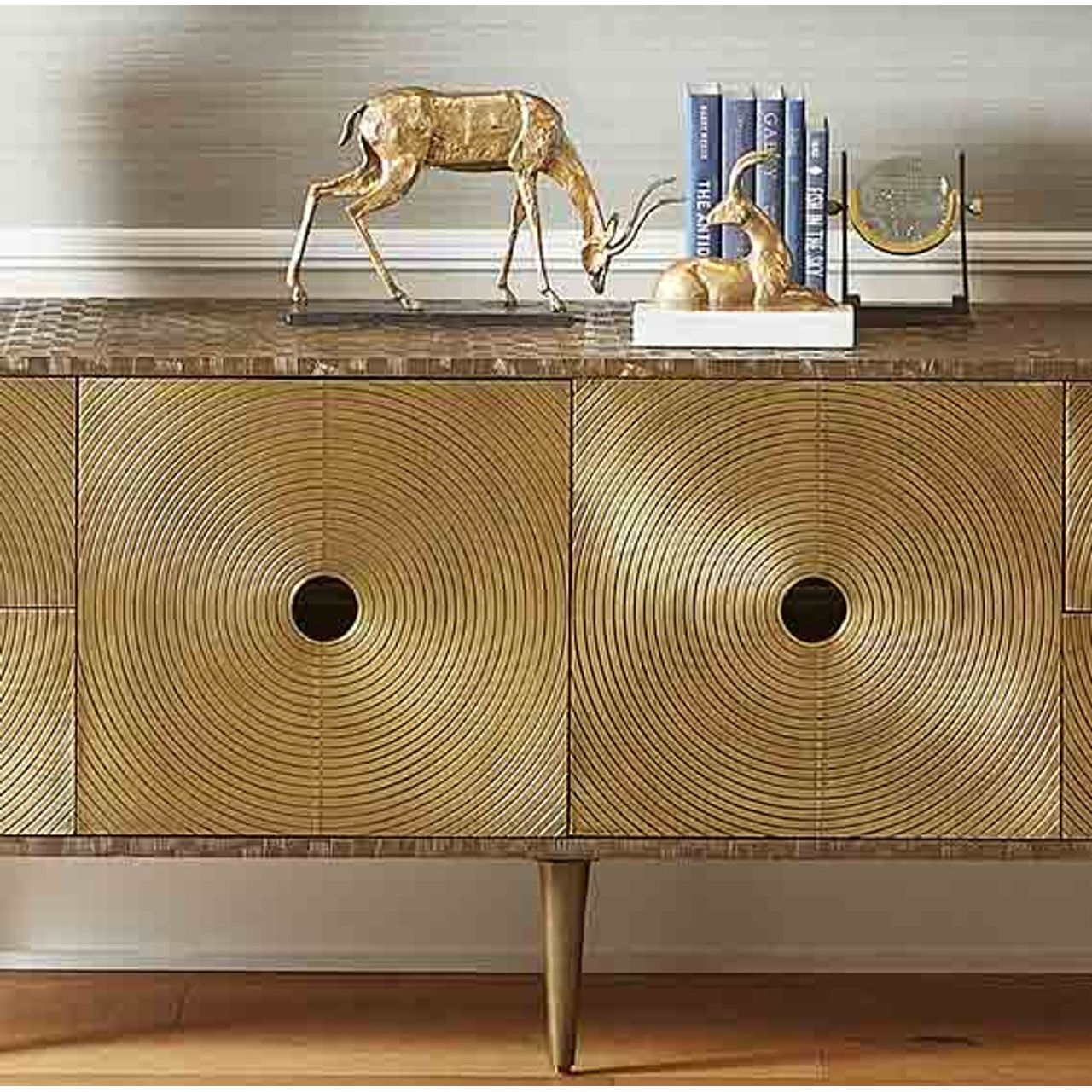 Le mystère royal du règne animal, décliné en miniature pour votre maison ou votre bureau. À la fois délicate et puissante, la statue d'Oryx à corne courbée reflète à merveille son sujet. Les artisans de Villa & House ont capturé cette créature sauvage dans un instant de repos, tel un instant fugace de safari. Sa silhouette gracieuse, réalisée en fonte et recouverte d'une couche de feuille d'or, présente une texture brute qui évoque la forme organique dont elle s'inspire. Des détails romantiques transparaissent, conférant à l'Oryx une grâce digne des espaces les plus élégants. Reposant sur un socle en bronze massif, cette statue est une pièce d'art sophistiquée, idéale pour des collections internationales ou pour une exposition individuelle.