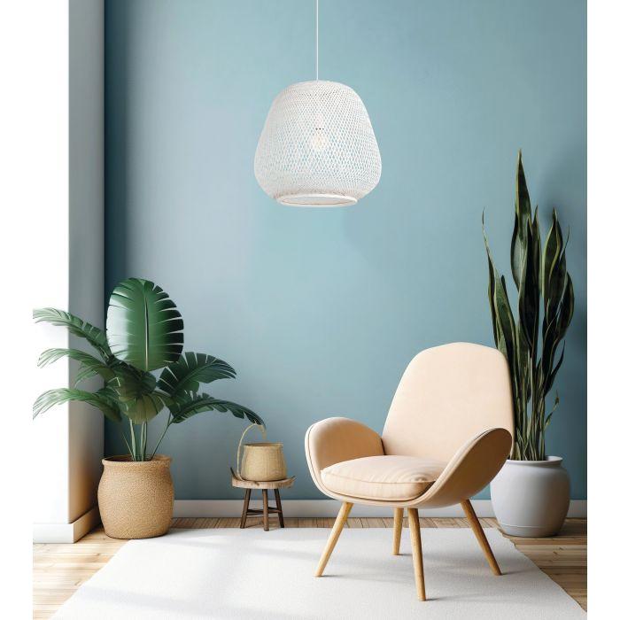 Dembleby Pendant by Eglo Lighting — a sculptural, modern pendant that combines refined craftsmanship with functional presence. The hand-finished, woven-metal shade creates a soft, patterned glow while maintaining a clean, contemporary silhouette ideal for elevated interiors.