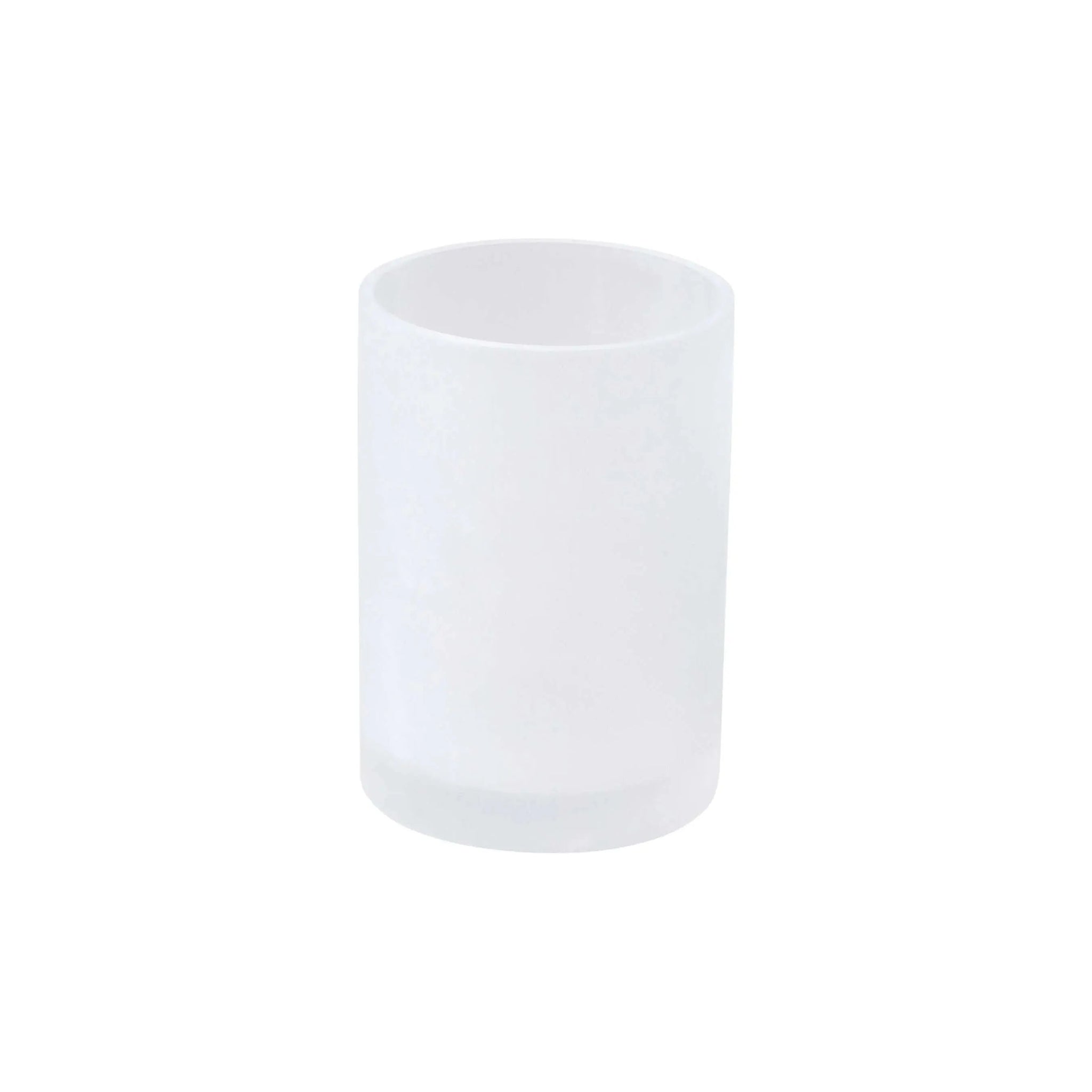 Ice Frosted Snow Tumbler from Mike + Ally — a study in restraint: a cylindrical frosted glass tumbler that reads as quiet luxury in any curated interior. Its matte, snow‑like finish mutes reflections and diffuses light, creating a soft, architectural presence on vanities, console tables, or sideboards.