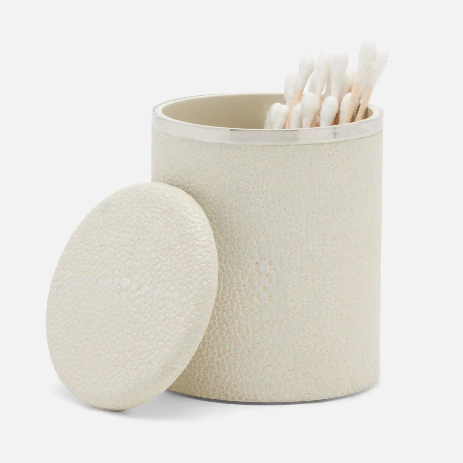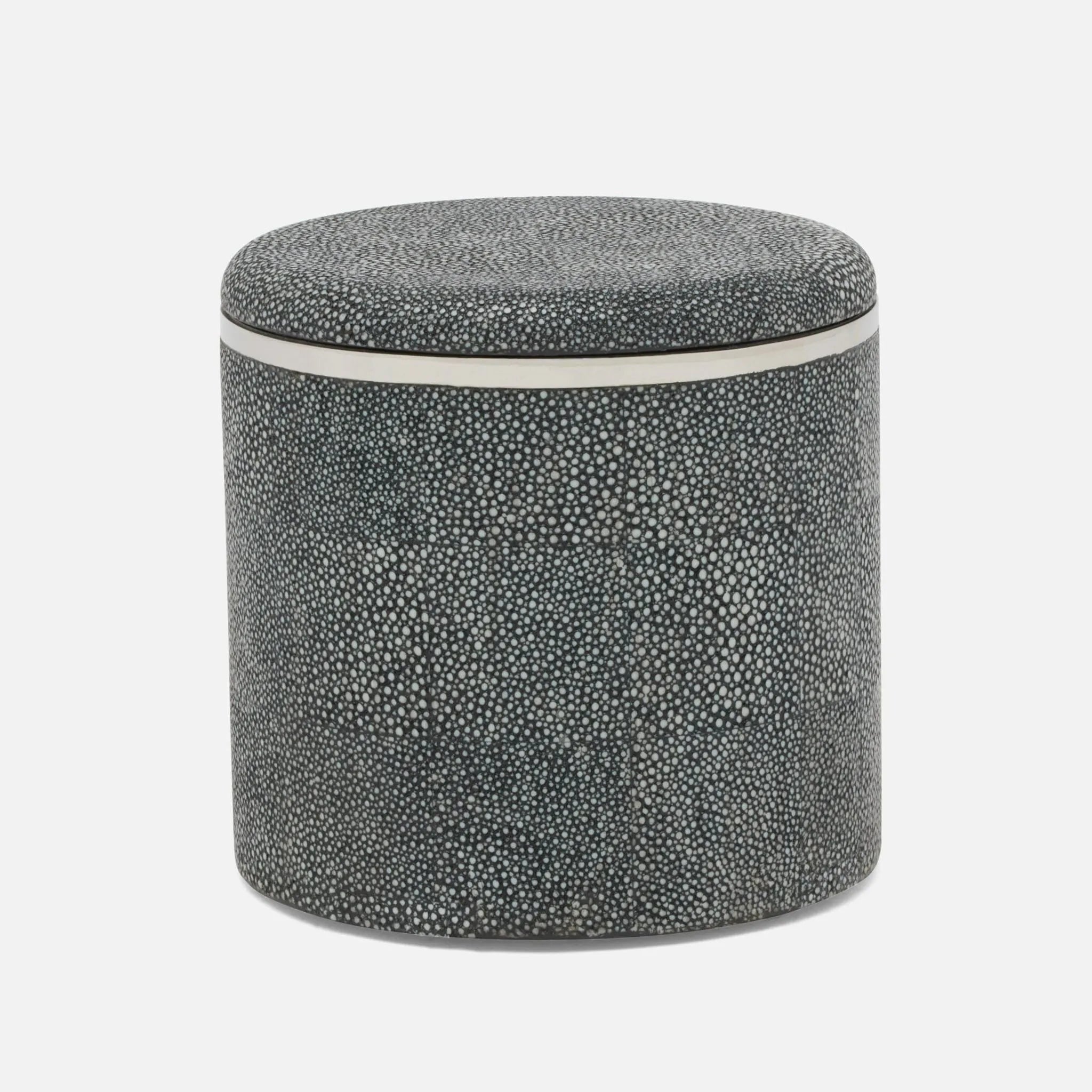 En associant le galuchat synthétique à de délicates garnitures dorées ou argentées, Bradford élève l'ensemble d'accessoires de salle de bain classique au summum du luxe.