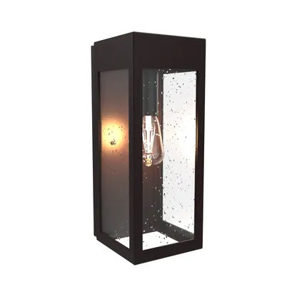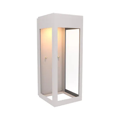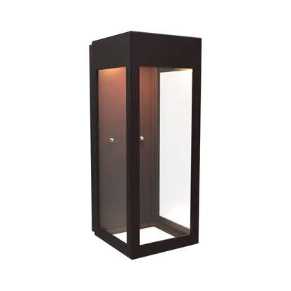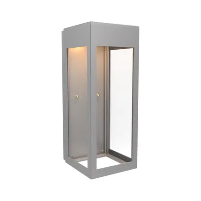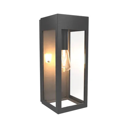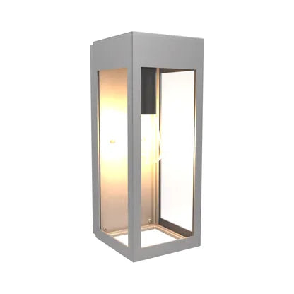 SNOC Stockholm Medium Wall Lamp — open-bottom design that balances rectilinear form with refined transparency. Designed to define entries and façades, its minimalist frame and clear-glass enclosure emphasize the bulb and downward illumination for crisp, architectural lighting.