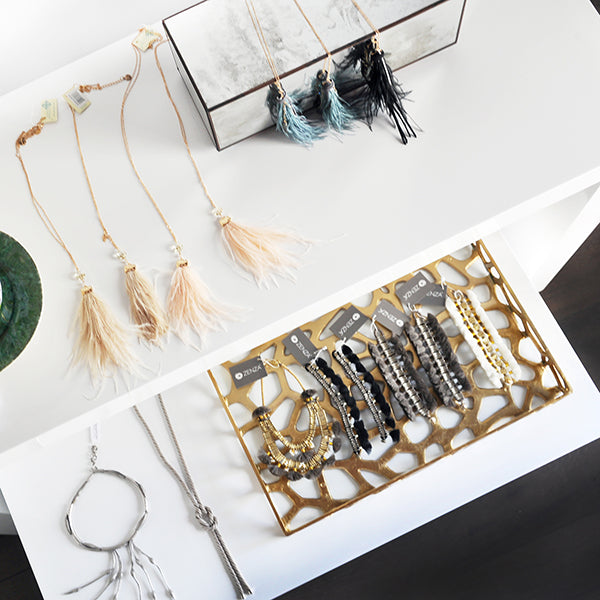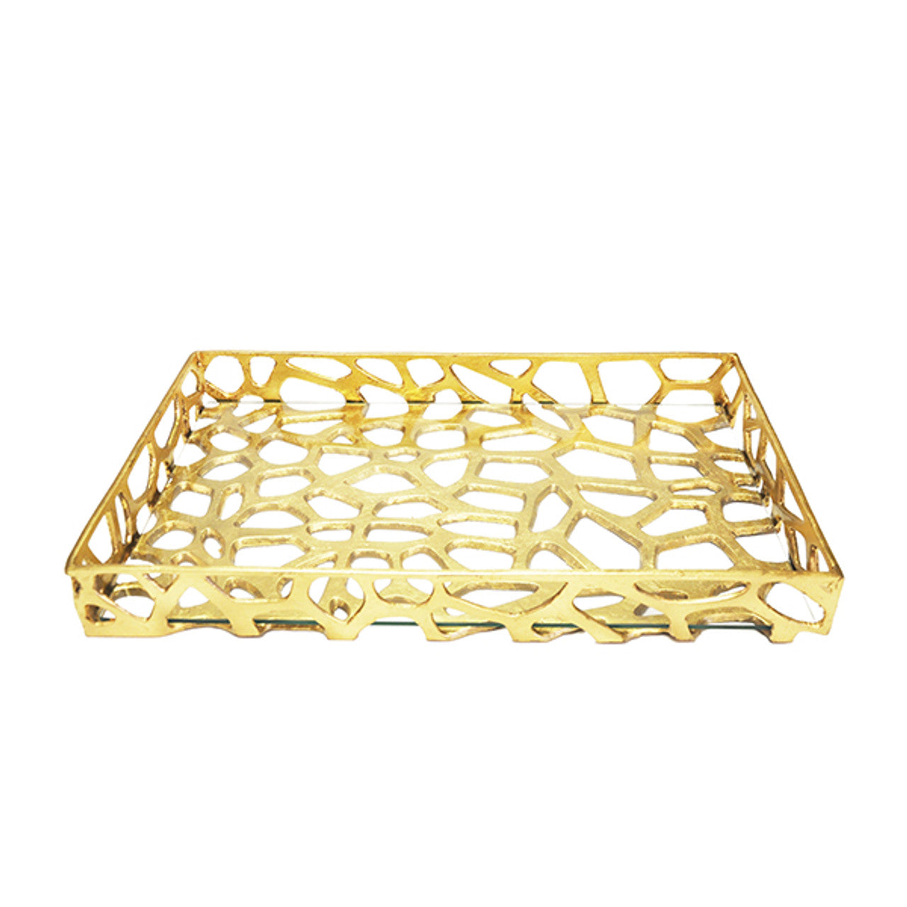 Inspiré par la nature, le plateau Byron, d'inspiration organique, est l'accessoire idéal pour exprimer votre style personnel et éclectique ! Fini à la main à la feuille d'or et doté d'un fond en verre, il est idéal pour servir des cocktails ou comme plateau de présentation unique pour vos bijoux ou accessoires.