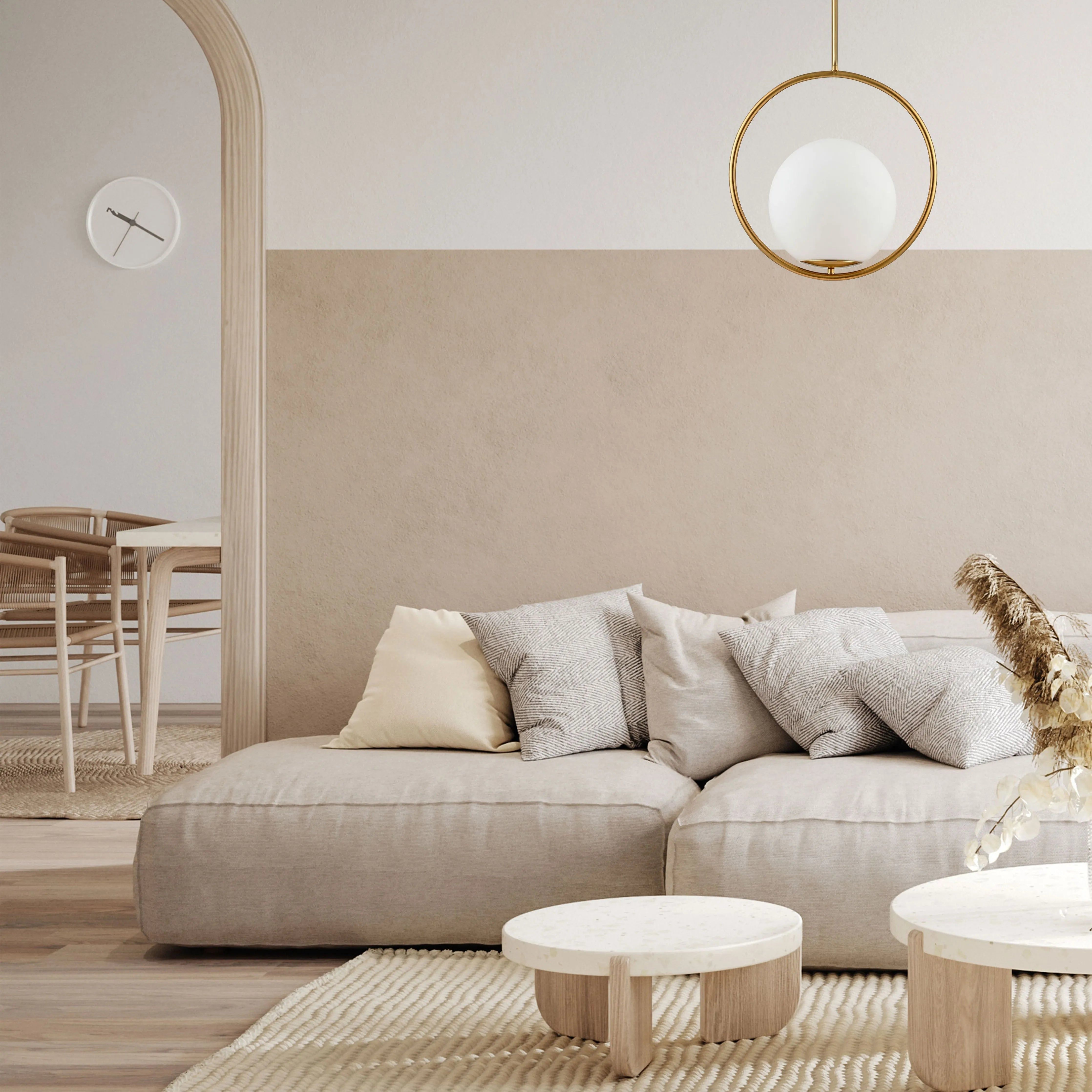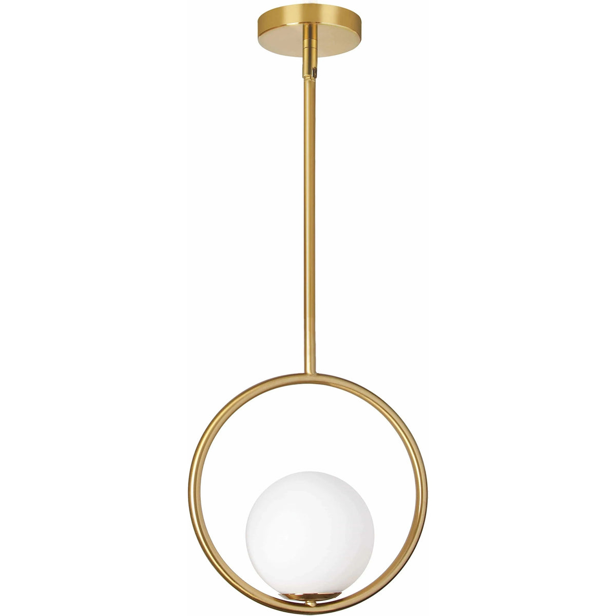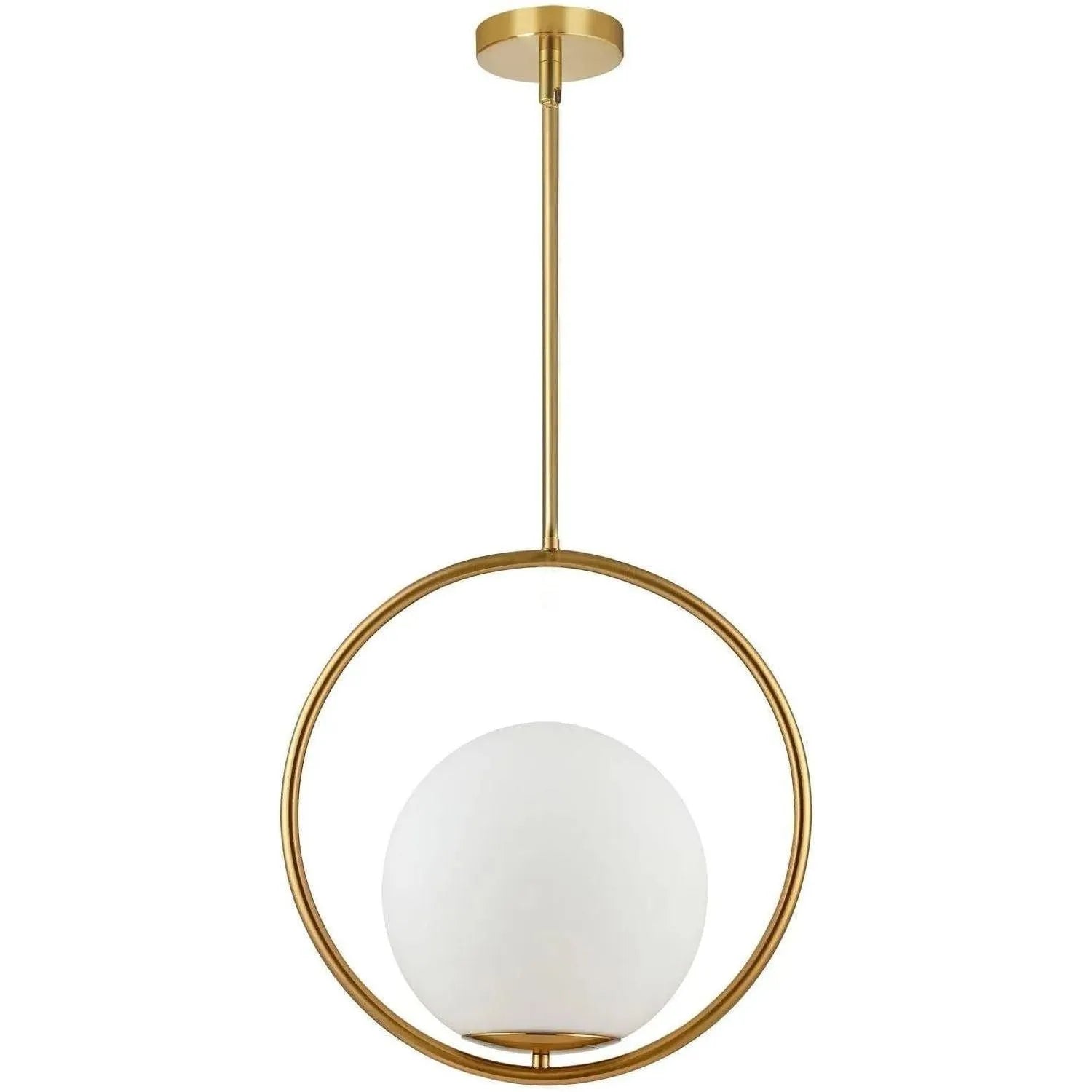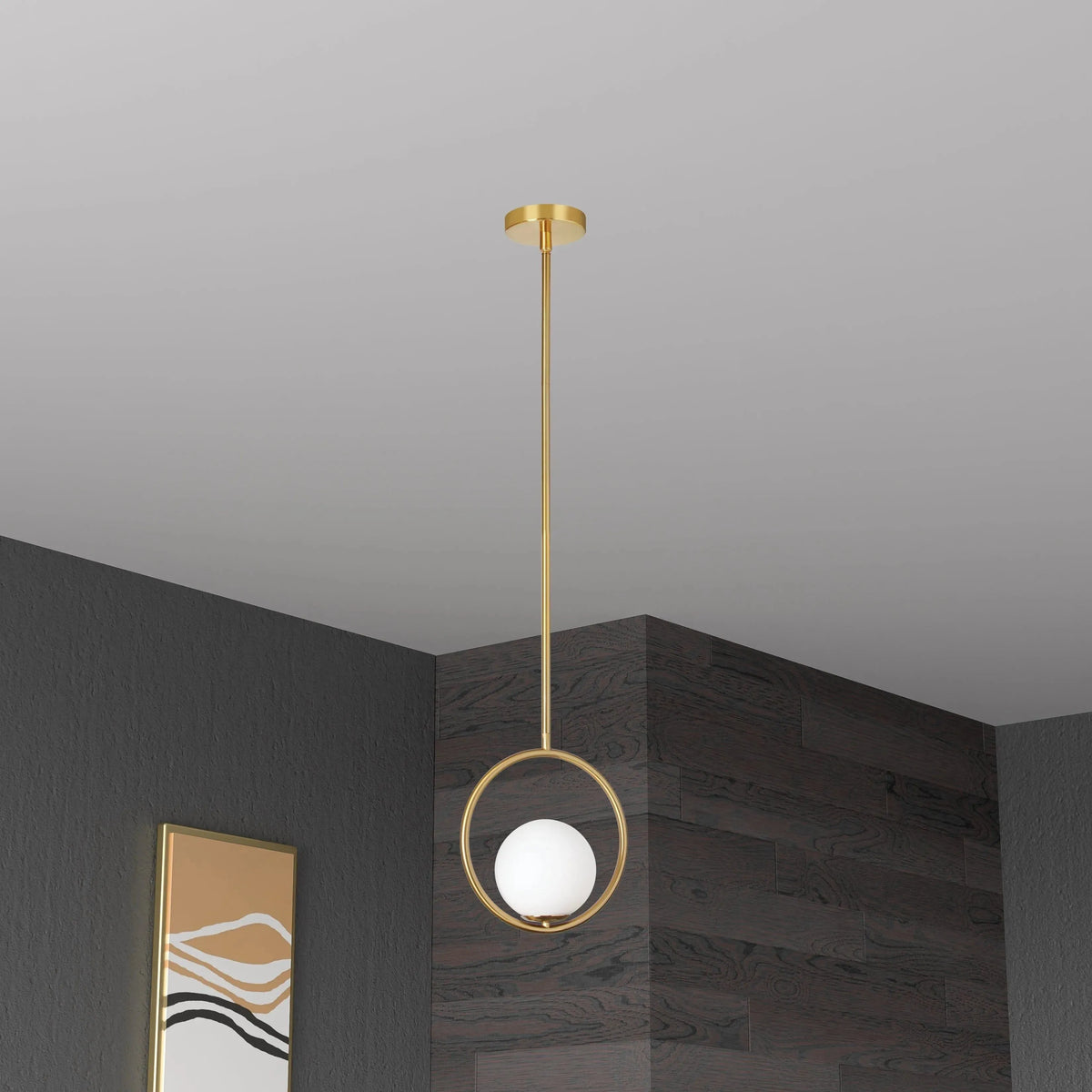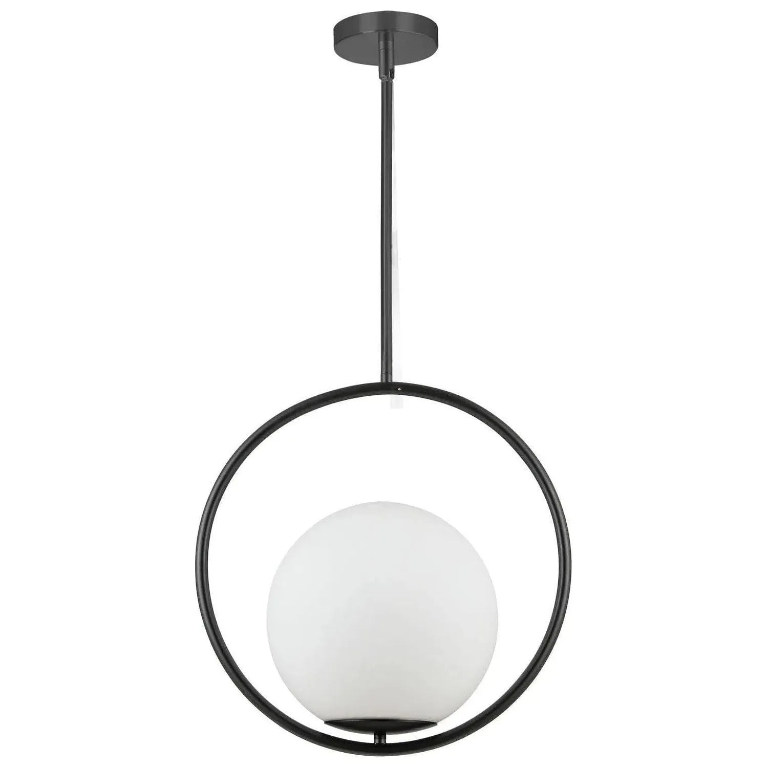 Adrienna Pendant by Dainolite presents a refined study in geometry: a matte metal ring cradling a luminous opal glass globe, engineered to read as both sculptural focal point and discreet task light. Its minimalist silhouette emphasizes form and finish, making a deliberate statement in curated interiors.