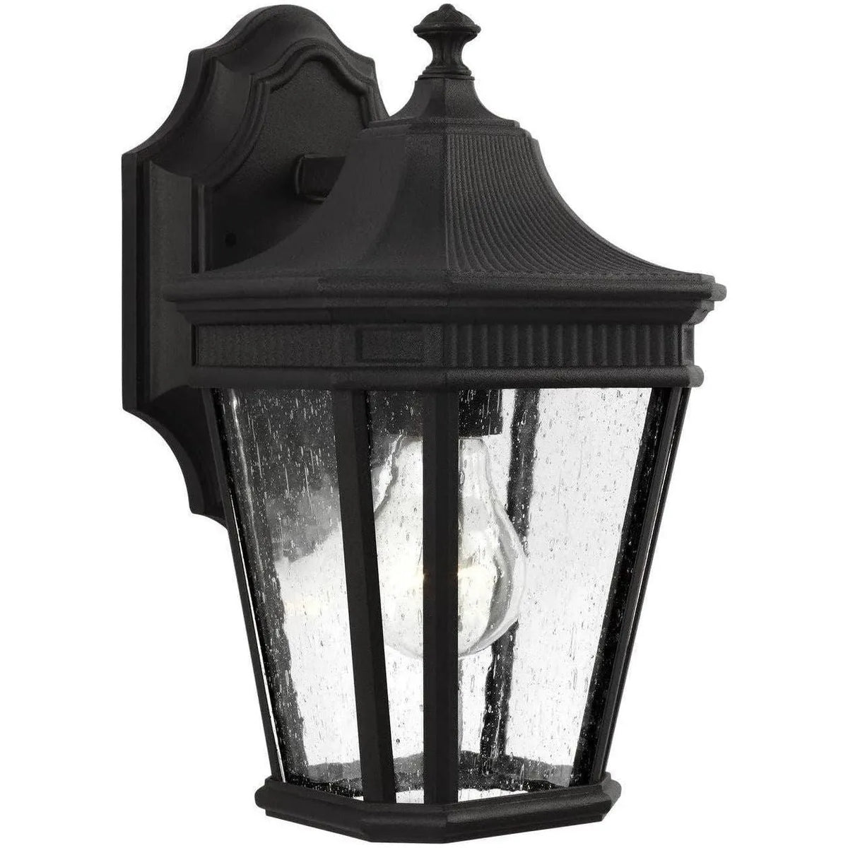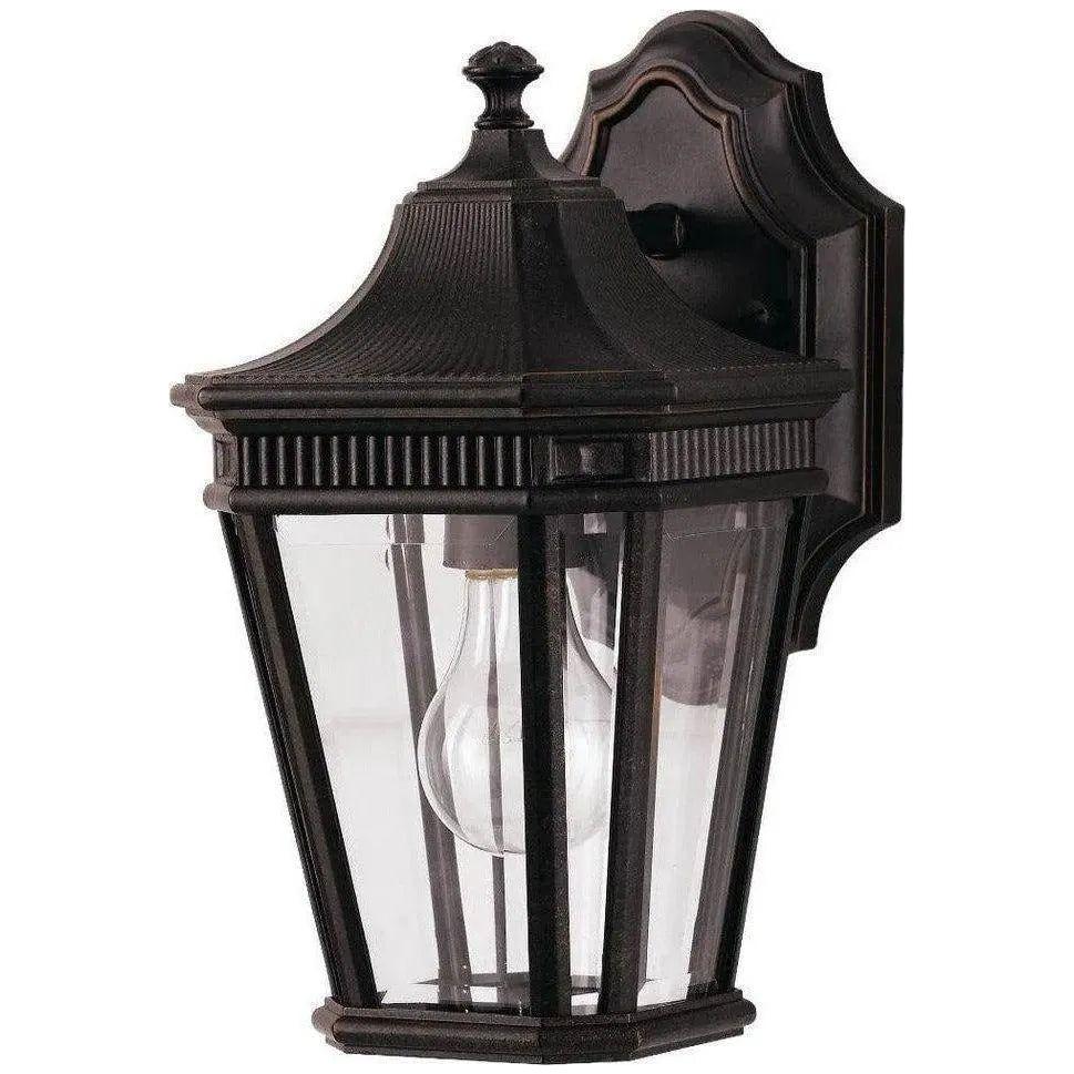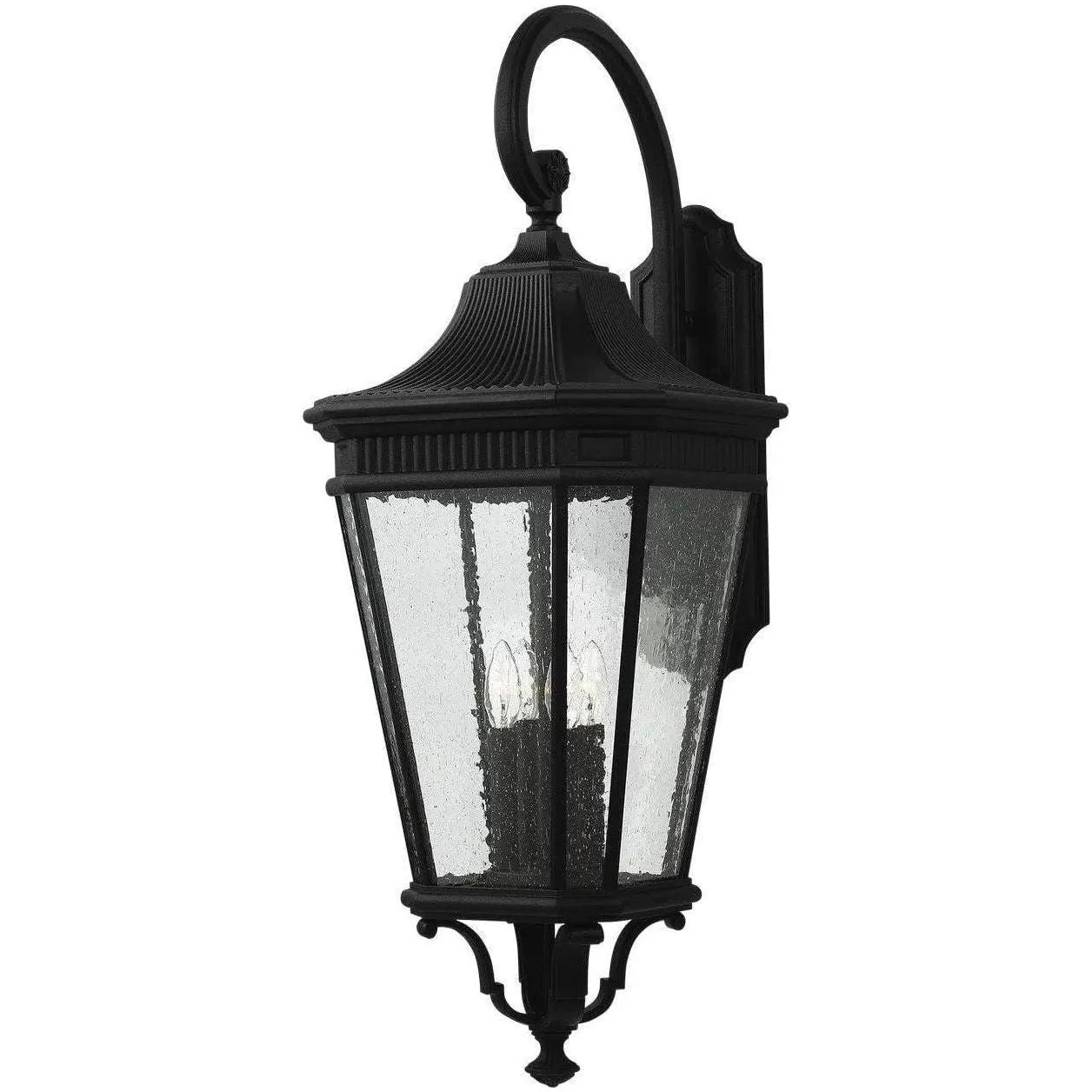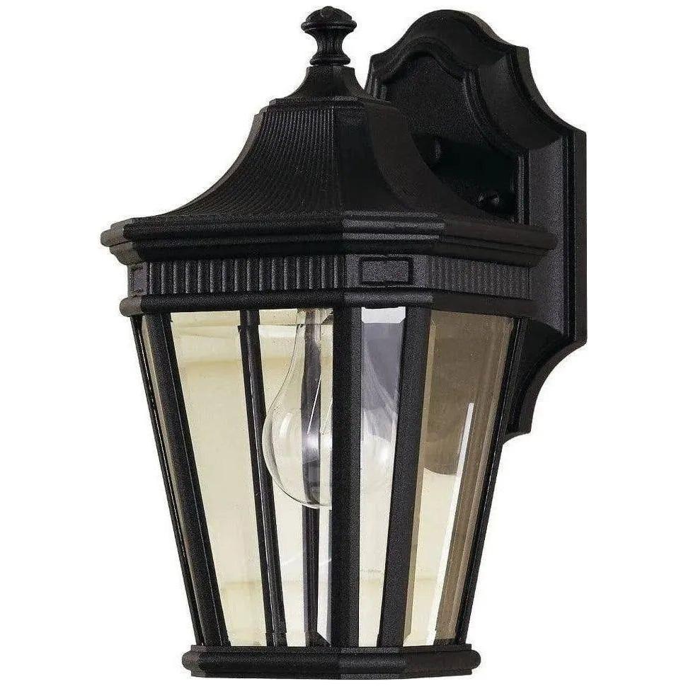 La conception traditionnelle et antique inspirée des lanternes à gaz de Cotswold Lane présente une moulure en forme de denticule au sommet de chaque vitre biseautée. Le profil de Cotswold Lane est intemporel et élégant. Disponible avec deux options de finition et de verre : un cadre noir ou bronze grec avec des panneaux de verre clair biseauté ou de verre transparent granuleux.