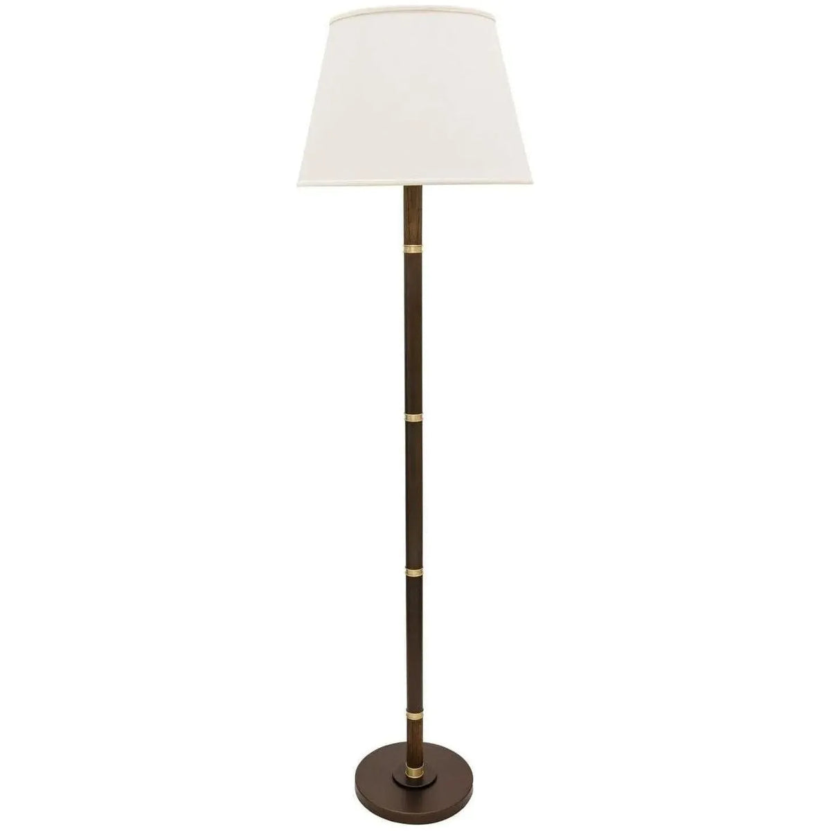 Finish: Chestnut Bronze w/ Satin Brass Glass/Shade: Natural Linen Hardback 12" x 18" x 12" Material: Metal Dimensions: 18" W x 18" L x 65" H Canopy Size: 10.5" Bulbs: 1 x E26 Medium 100W, Dimmable Collection: Barton
