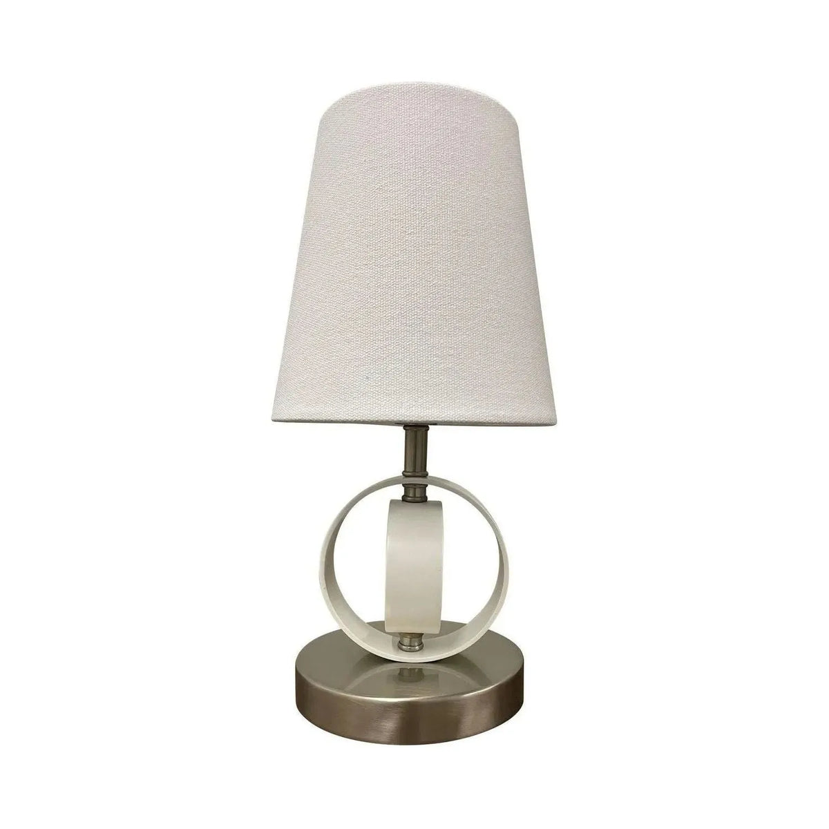 Finish: Nickel satiné/blanc Glass/Shade: Obelle en lin blanc Material: Metal Dimensions: 6 "W x 12,5" H Canopy Size: 5 "Diamètre rond Bulbs: 1x B10 40W