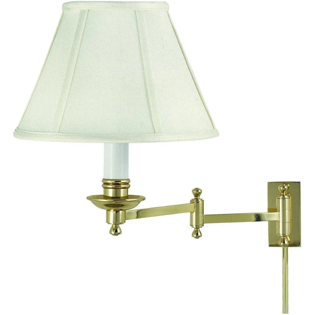 Finish: Antique Brass Glass/Shade: Off-White Linen Softback 5" x 10" x 6.75" Material: Metal Dimensions: 10" W x 13" H Extension: 11.50" Canopy Size: 3.5"x 1.75" Bulbs: 1 x Medium Medium 60W, Dimmable Collection: Library