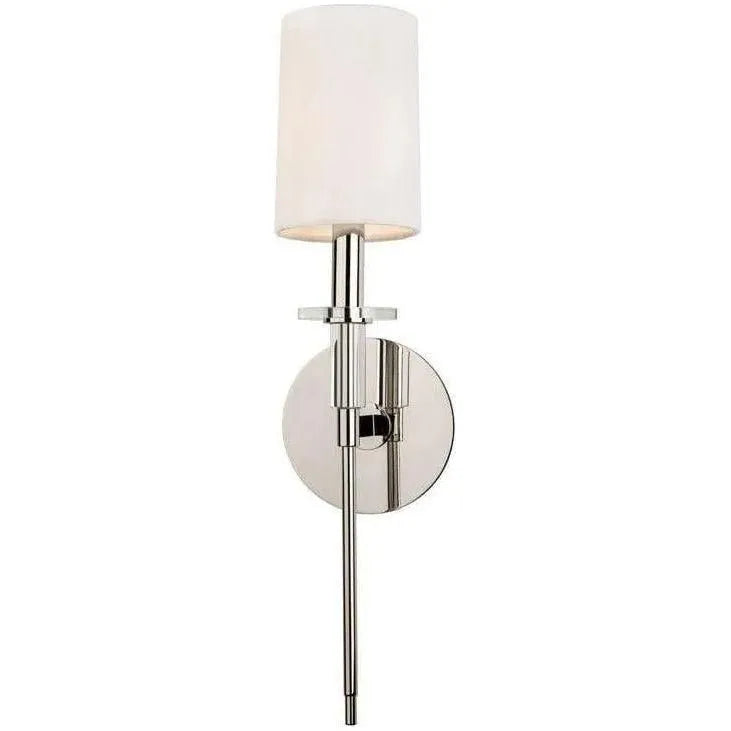 Finish: Aged Brass Glass/Shade: Off White Material: Acier Dimensions: 5" W x 18.75" H Weight: 3 lbs. Extension: 5.50" Canopy Size: 4.5" Bulbs: 1 x E12 Candelabra 60W, Dimmable Wire: 7" Collection: Amherst Spec Sheet:Download Instructions:Download
