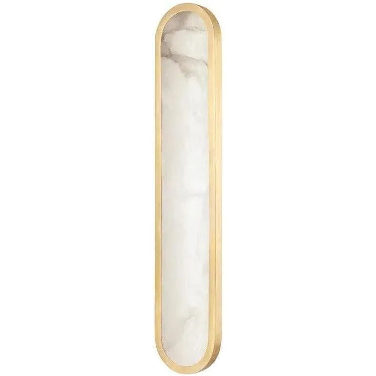 Un ovale du meilleur albâtre espagnol enveloppé dans un cadre en forme de piste de course constitue une combinaison gagnante. S'étendant à seulement 1,5 "du mur, Manhasset garde un profil bas car la lumière de sa lampe unique remplit doucement l'espace. Cette applique élégante peut être accrochée verticalement ou horizontalement. Disponible en deux tailles et deux finitions (Laiton vieilli et nickel poli).