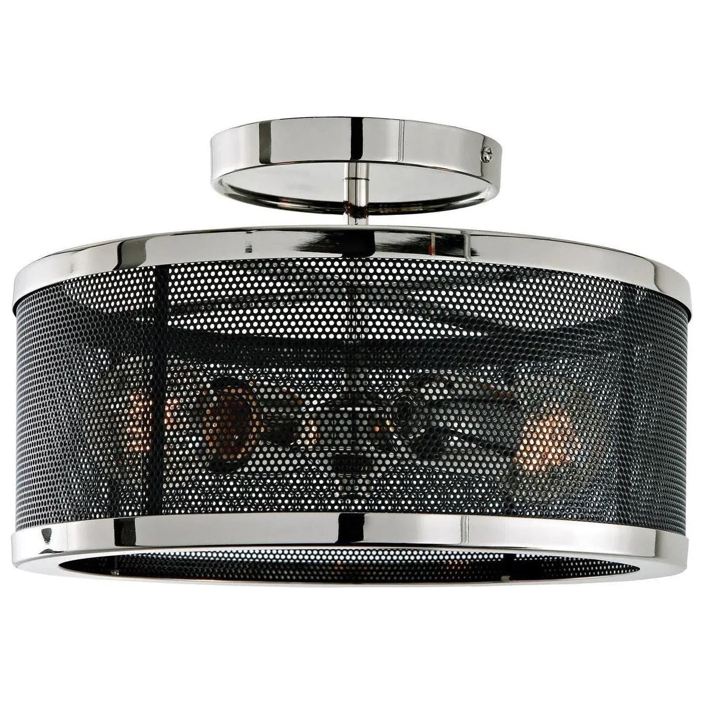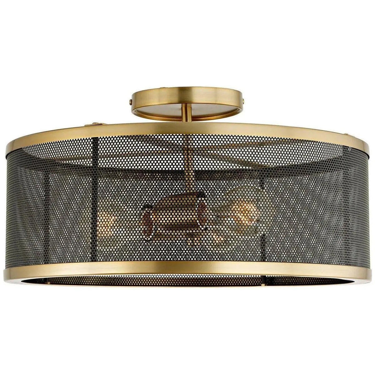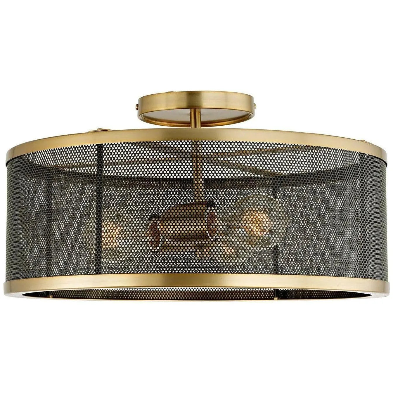 La collection Wellington offre une option industrielle haut de gamme avec des détails en métal mélangé. Ce tour semi-Plafonnier est simple avec des lignes droites et des panneaux en maille. Les options à deux et trois lumières offriront la touche parfaite comme point focal dans une variété d'espaces de vie et d'applications.