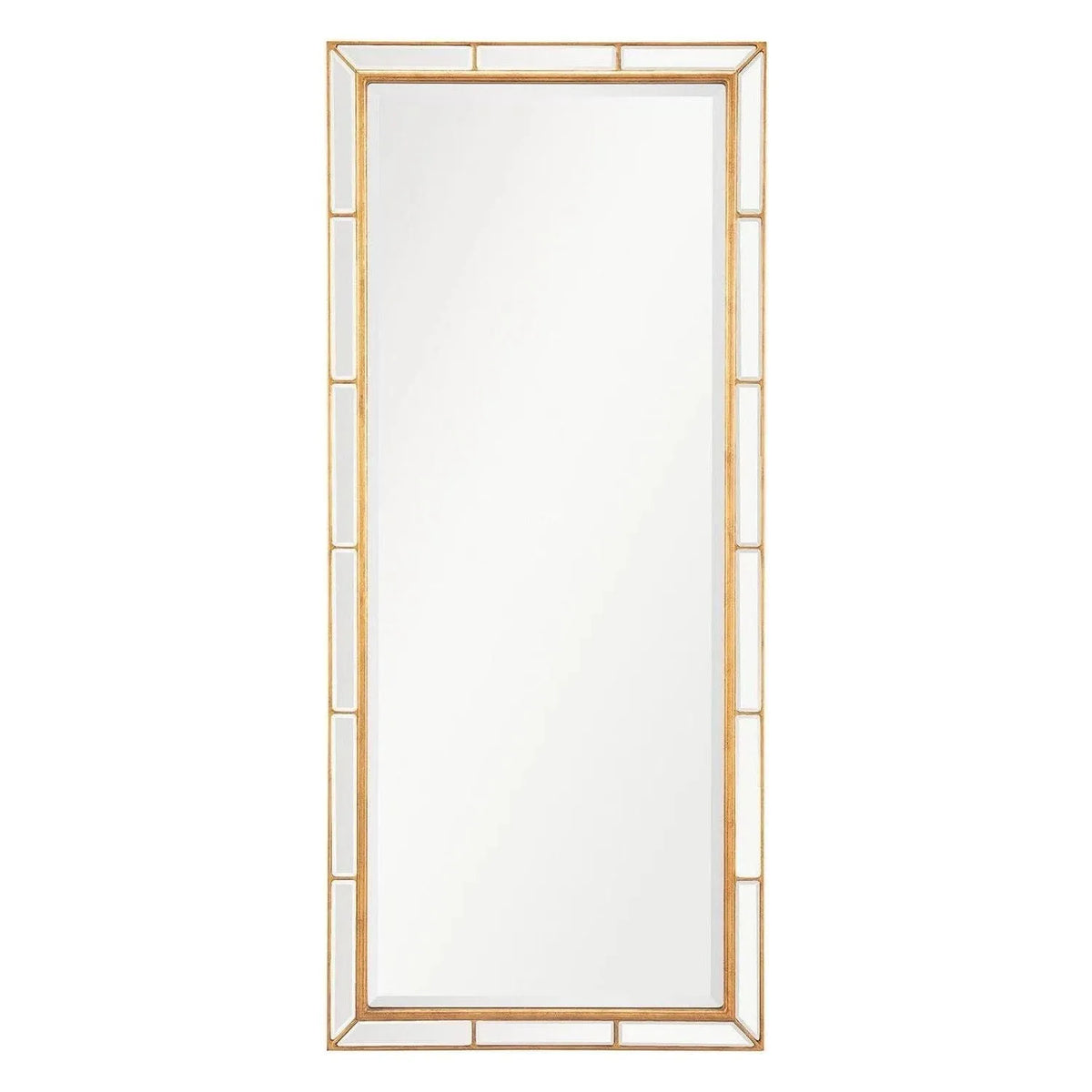 Le style et la fonction se rencontrent avec le miroir de dressing Plaza. Idéal pour les petits espaces, ce miroir a un cadre haut et biseauté avec des accents dorés, apportant luxe et style à n'importe quel espace.