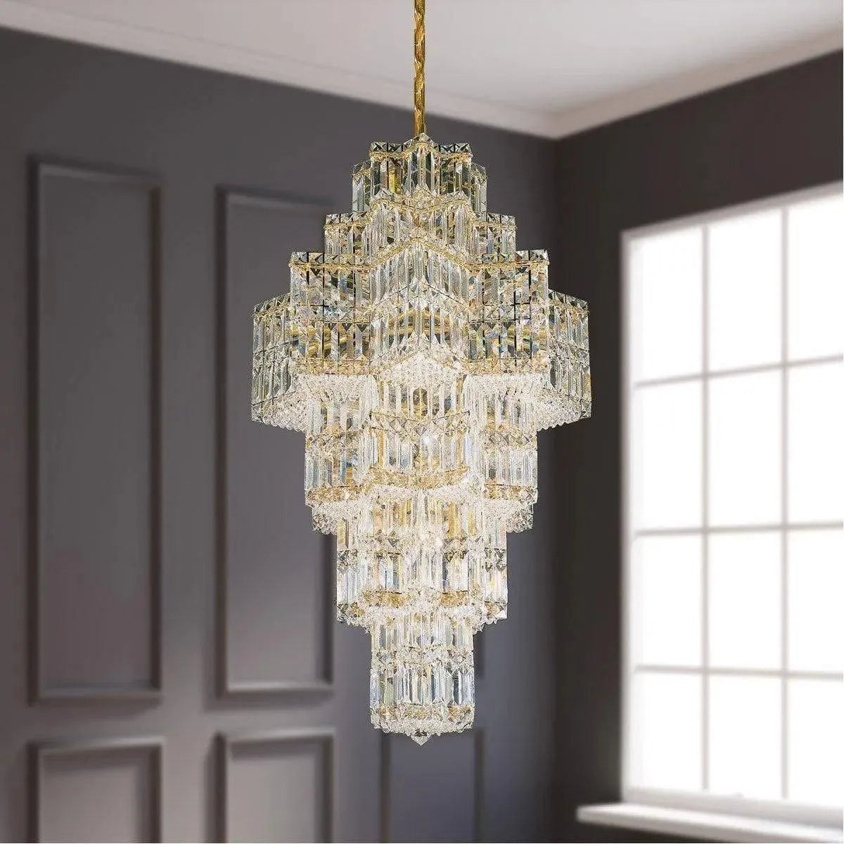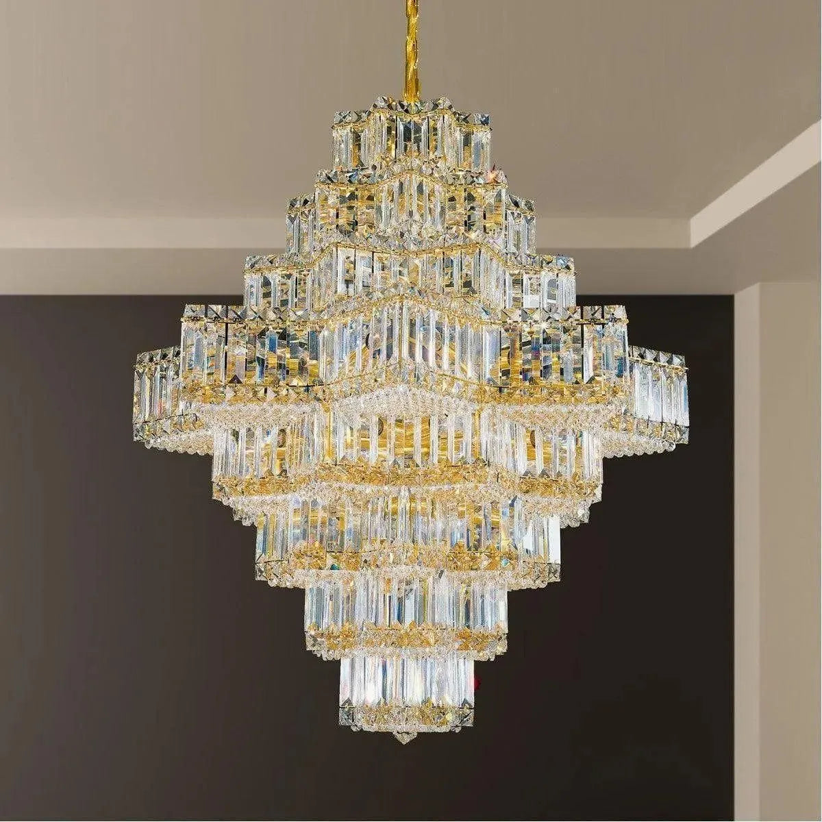 Finish: Gold Glass/Shade: Gemcut Crystal Dimensions: 22.5'' W x 41.5'' H Bulbs: B10-35, 60 Max. Watts, E12 Chain: 84'' Collection: Equinoxe Spec Sheet:Download
