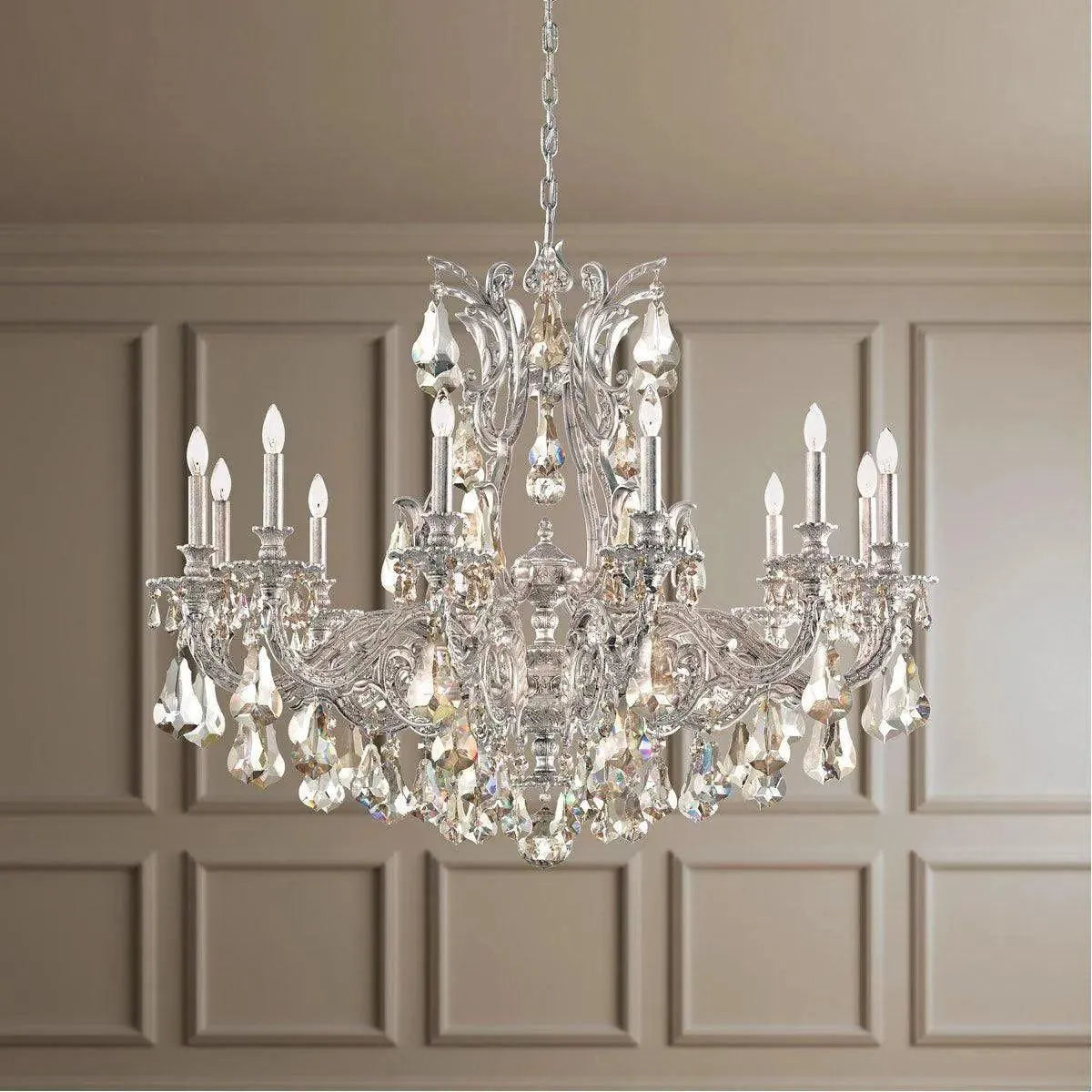 Le cadre Rococco de Sophia, entièrement coulé en Italie pour Schonbek, présente des métaux précieux minutieusement gravés formant une conception à cage ouverte. De riches ornements en cristal ajoutent une allure royale à cette véritable pièce d'héritage.