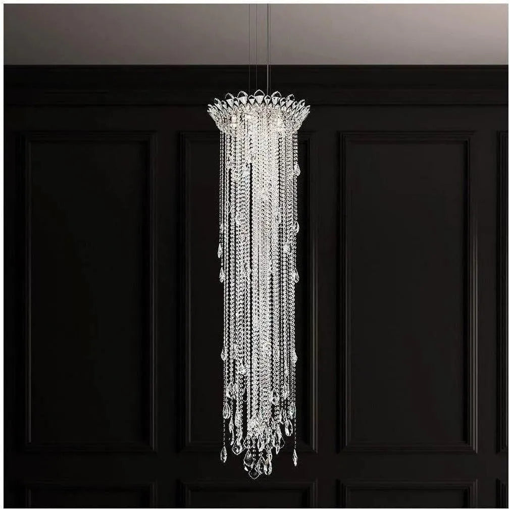 La luminosité éthérée des brins de cristal luxuriants apporte un élément fantaisiste à l'emblématique Trilliane Suspendu. Les guirlandes se mêlent à des pendeloques inversées scintillantes, créées selon une technique historiquement révolutionnaire qui évoque la crudité du cristal minéral.