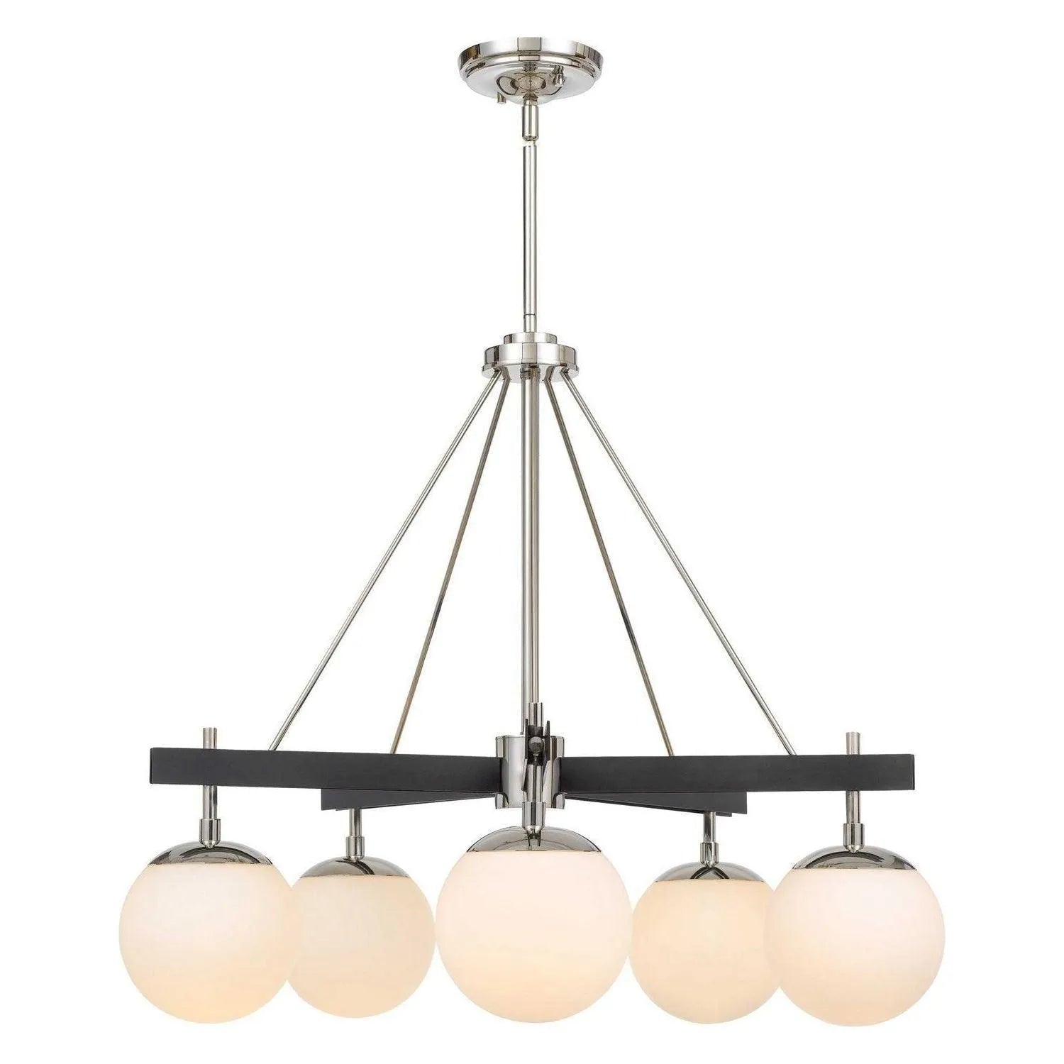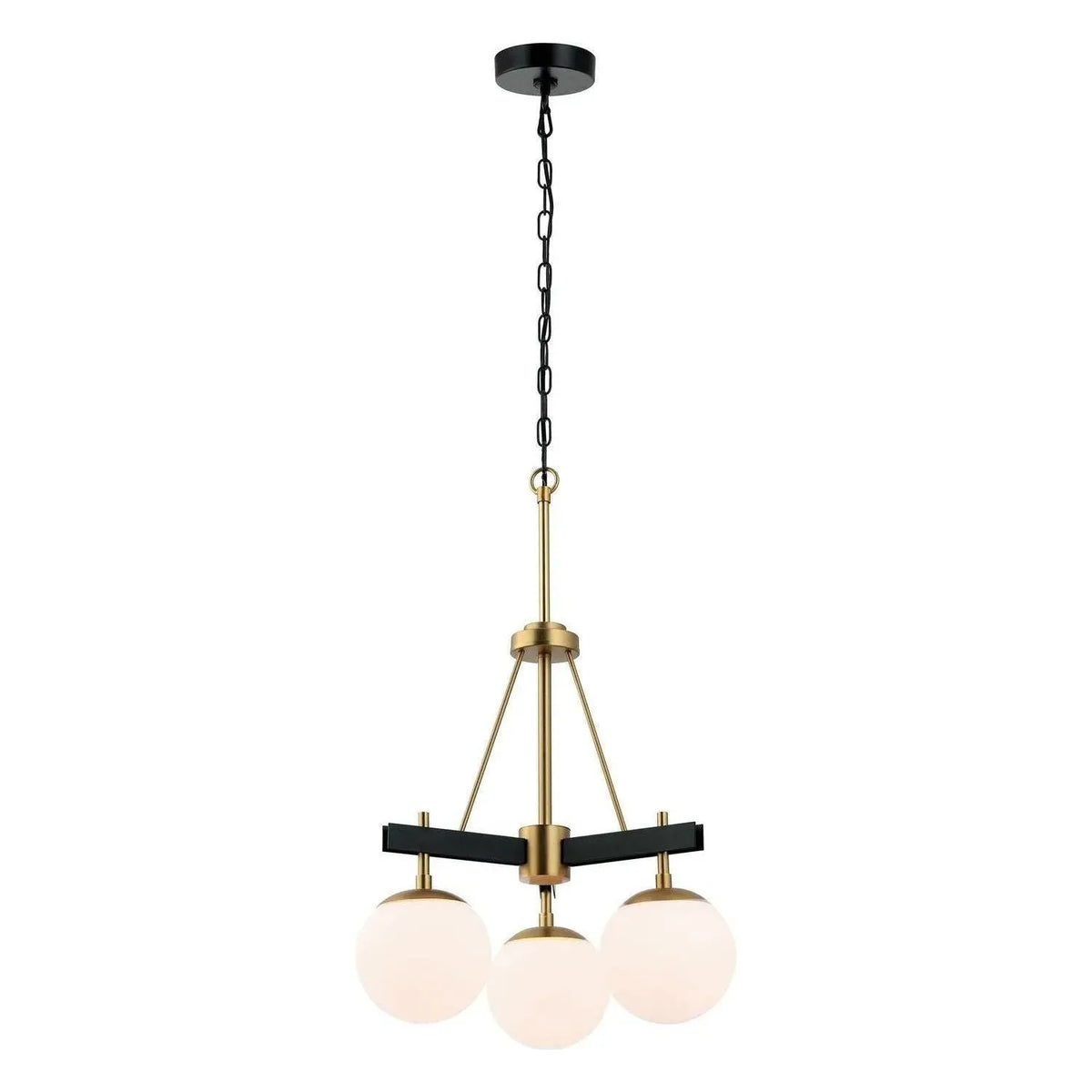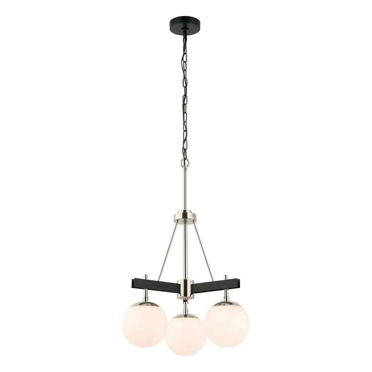 Finish: Noir/Nickel Poli Glass/Shade: Globes en verre recyclé blancs Dimensions: 18 "W x 22,25" H Weight: 6,90 lbs. Canopy Size: 5 "x 1" Bulbs: 3x Candelabra 60W, Dimmable Chain: 10' Collection: Allié