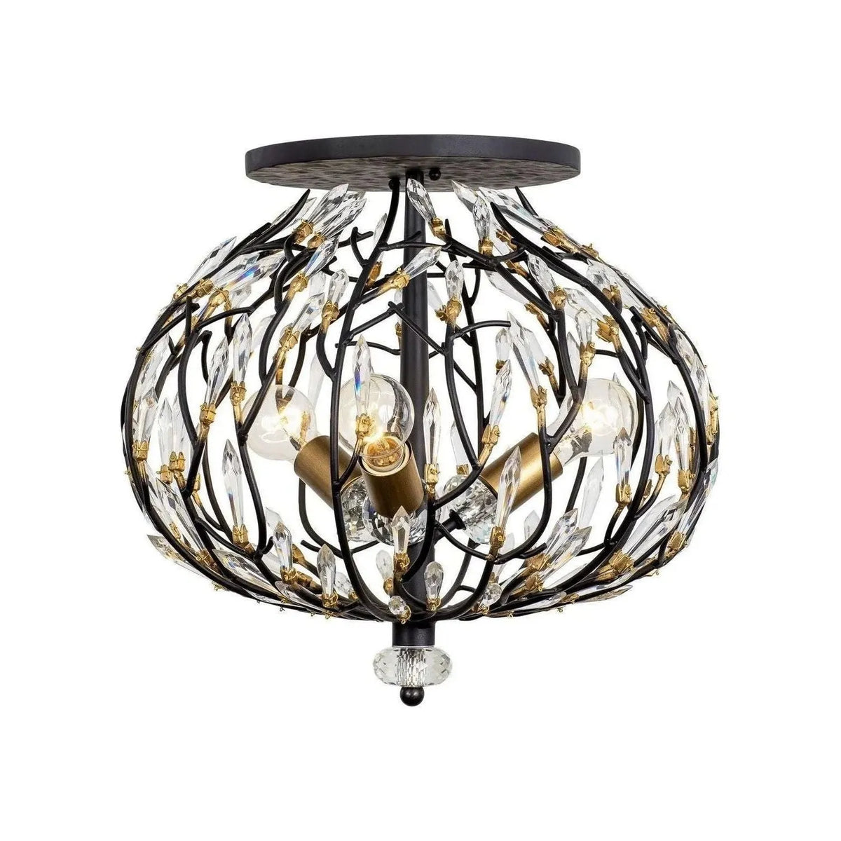 Finish: Matte Black/French Gold Glass/Shade: Premium Pre-Installed Crystal Dimensions: 18" W x 17" H Weight: 14.60 lbs. Canopy Size: 10" x 0.625" Bulbs: 3x E26 Medium 100W, Dimmable Collection: Se prélasser