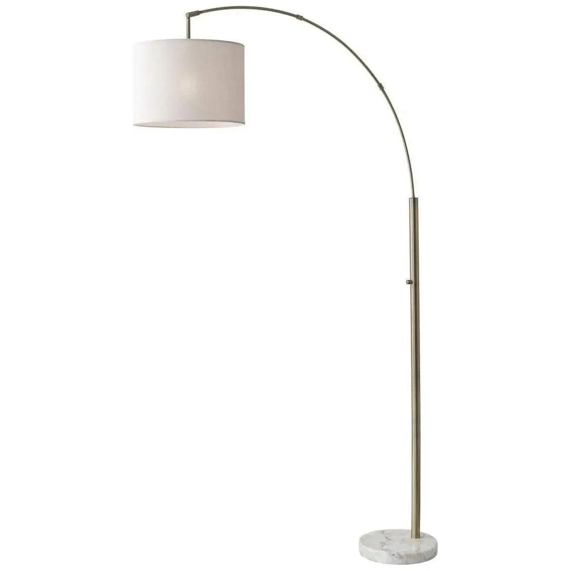A smart and stylish way to light up a seating area, the Bowery Arc Lamp provides overhead lighting that can be controlled with an adjustable shade. Aside from functional assets, an antique brass or brushed steel finish is paired with a marble base to display striking style. An 100 Watt bulb shines beautifully through an off-white textured fabric shade. An on/off rotary switch is placed conveniently on the pole. This lamp has a clear cord and is smart outlet compatible. Bulbs are not included.