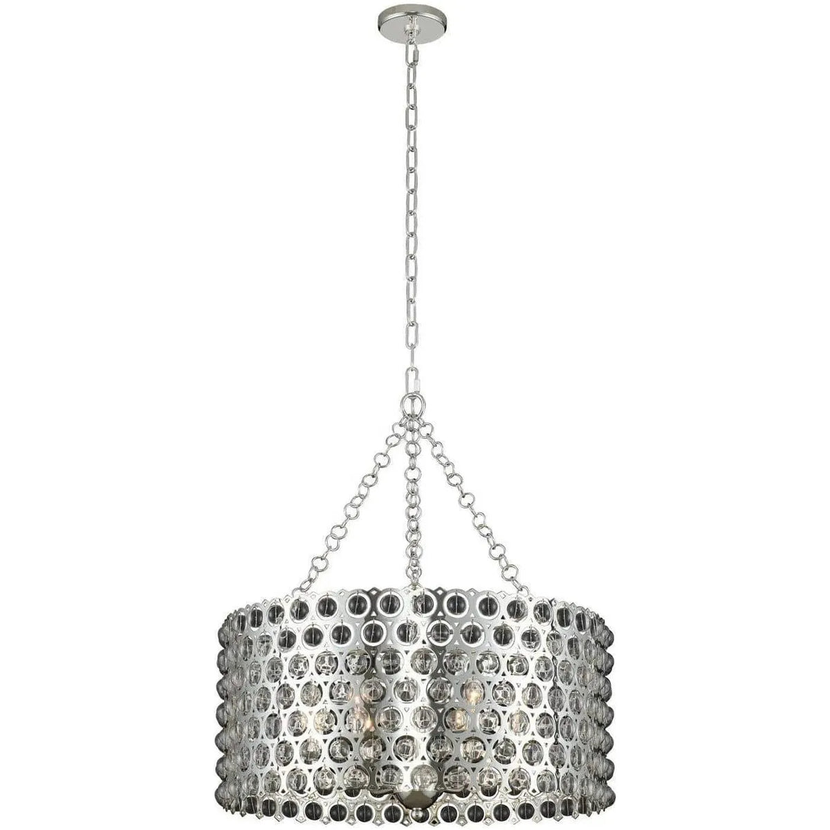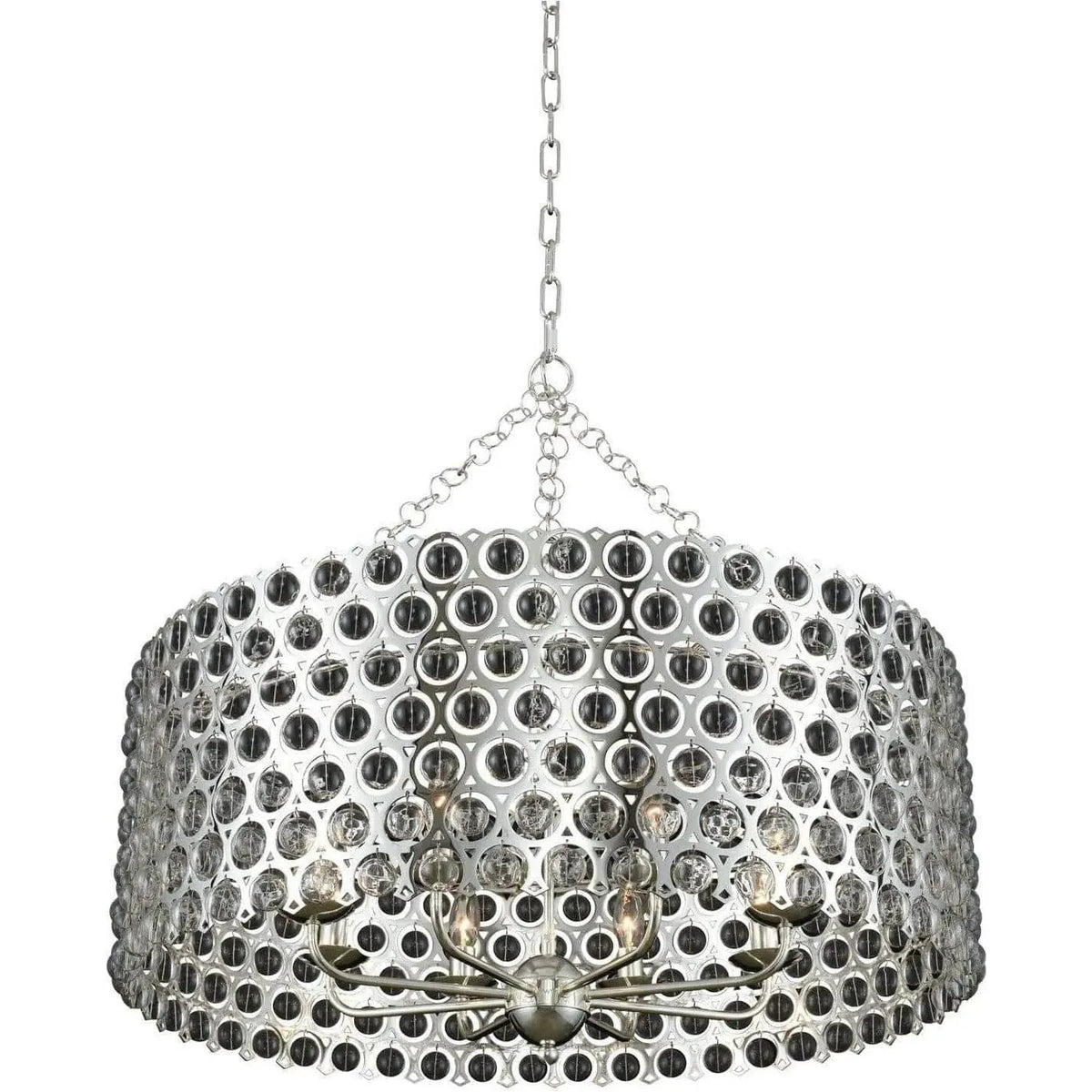 Delicately pinned glass balls are suspended in a precision laser cut frame. Finished in our exclusive polished silver or brushed champagne gold which coordinates beautifully with today's design trends.