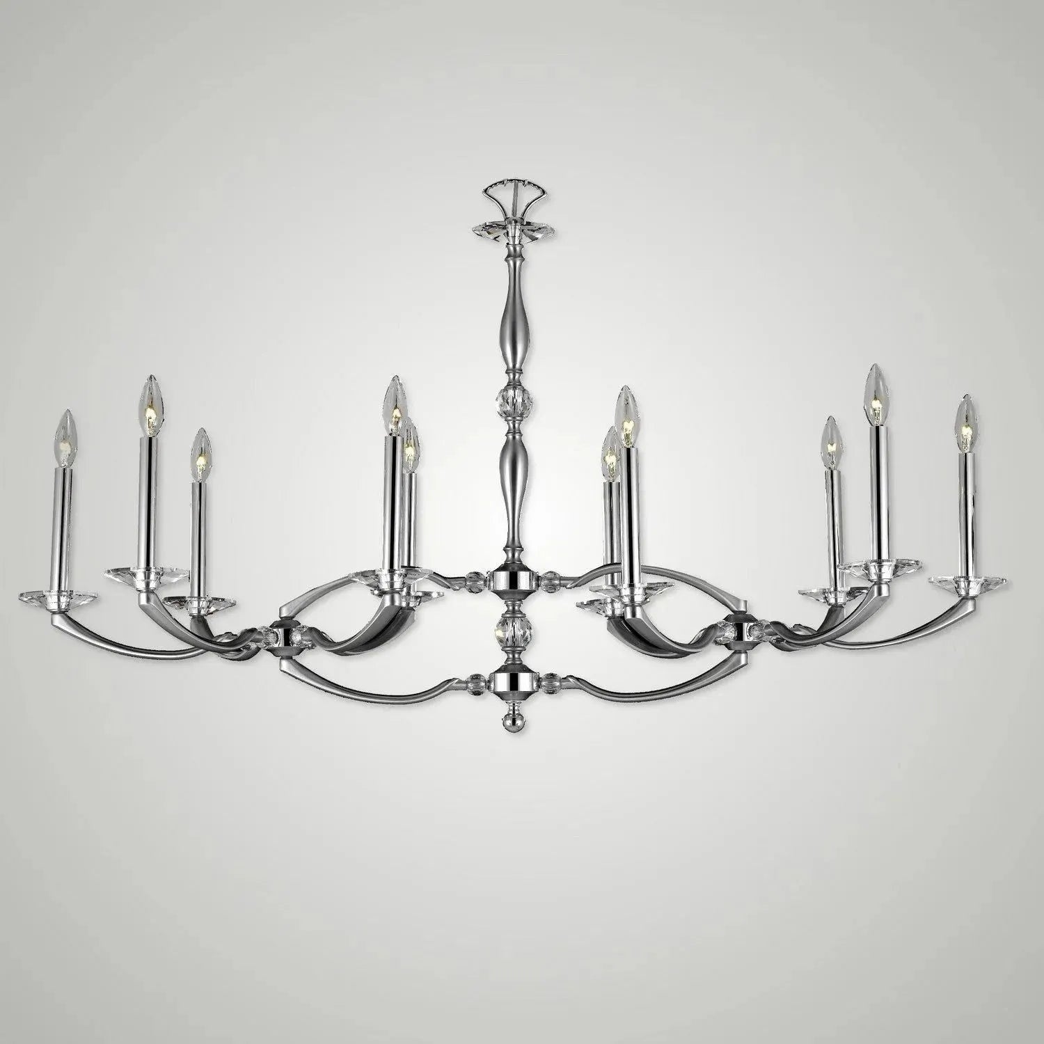 Crafted with polished brass hardware and precision-cut crystal elements, this designer lighting piece features multiple candle-style arms, a sculpted central column, and crisp reflective finishes that read modern yet timeless. Its low-profile linear silhouette solves scale challenges over long tables and island counters.