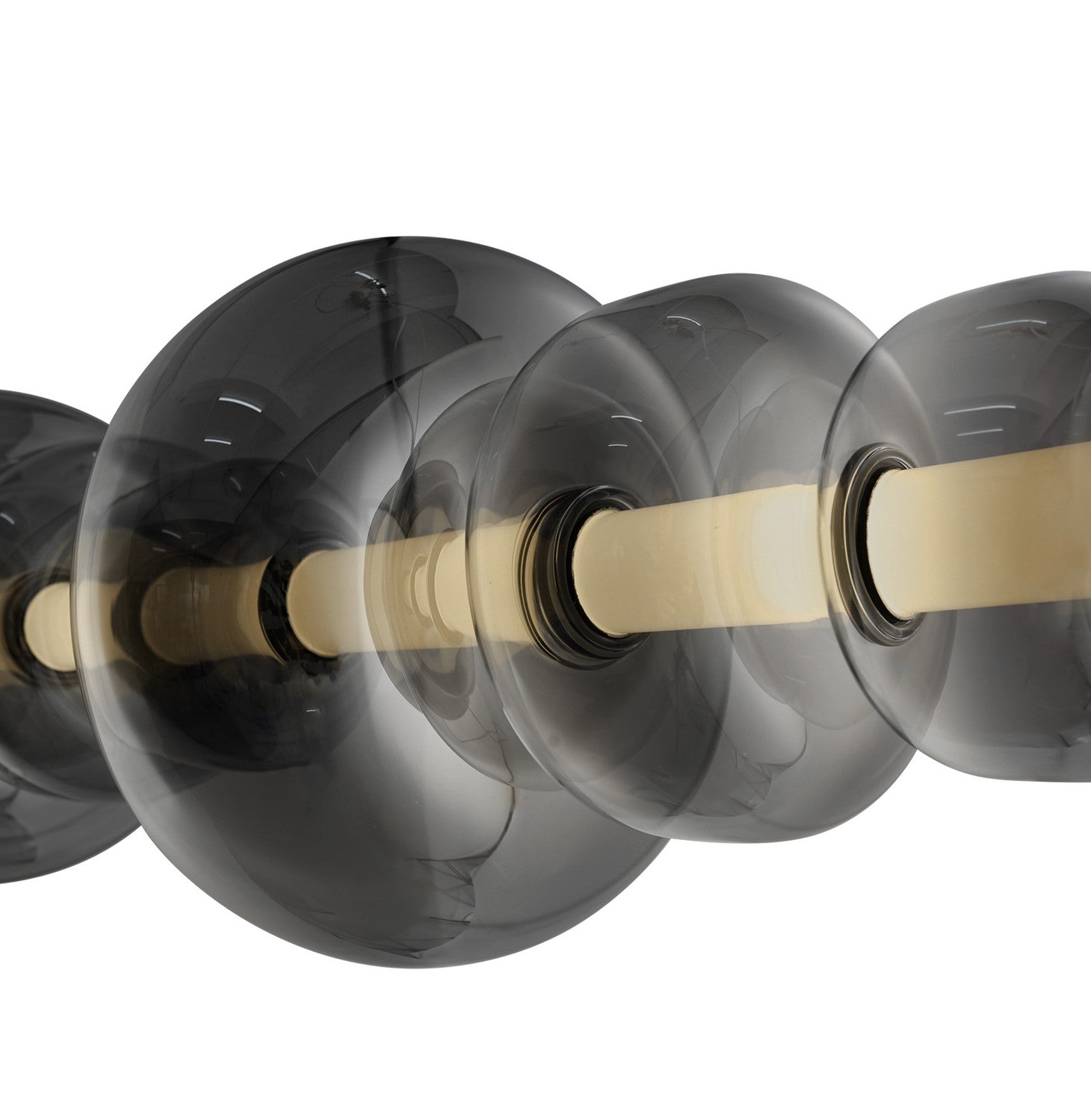 Illuminate your space with the Astra LED island chandelier, a striking embodiment of contemporary elegance and timeless allure. Featuring a radiant white LED inner tube, it is beautifully encased within smoke ombre glass layers, creating a mesmerizing gradient effect. The sleek black frame adds an elegant contrast, making this piece a captivating centerpiece for any interior.