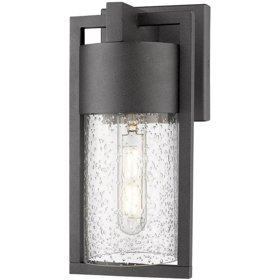 The "Bond Collection" of exterior lanterns is finished in black, has cylindrical clear seeded glassware, and is illuminated by a LED T-Bulb. (Backed by our industry leading 25 year on corrosion & 5 years against premature paint defects). Due to the California Title 20 regulations, replaceable light bulbs will not be included with any product sold to customers in California.