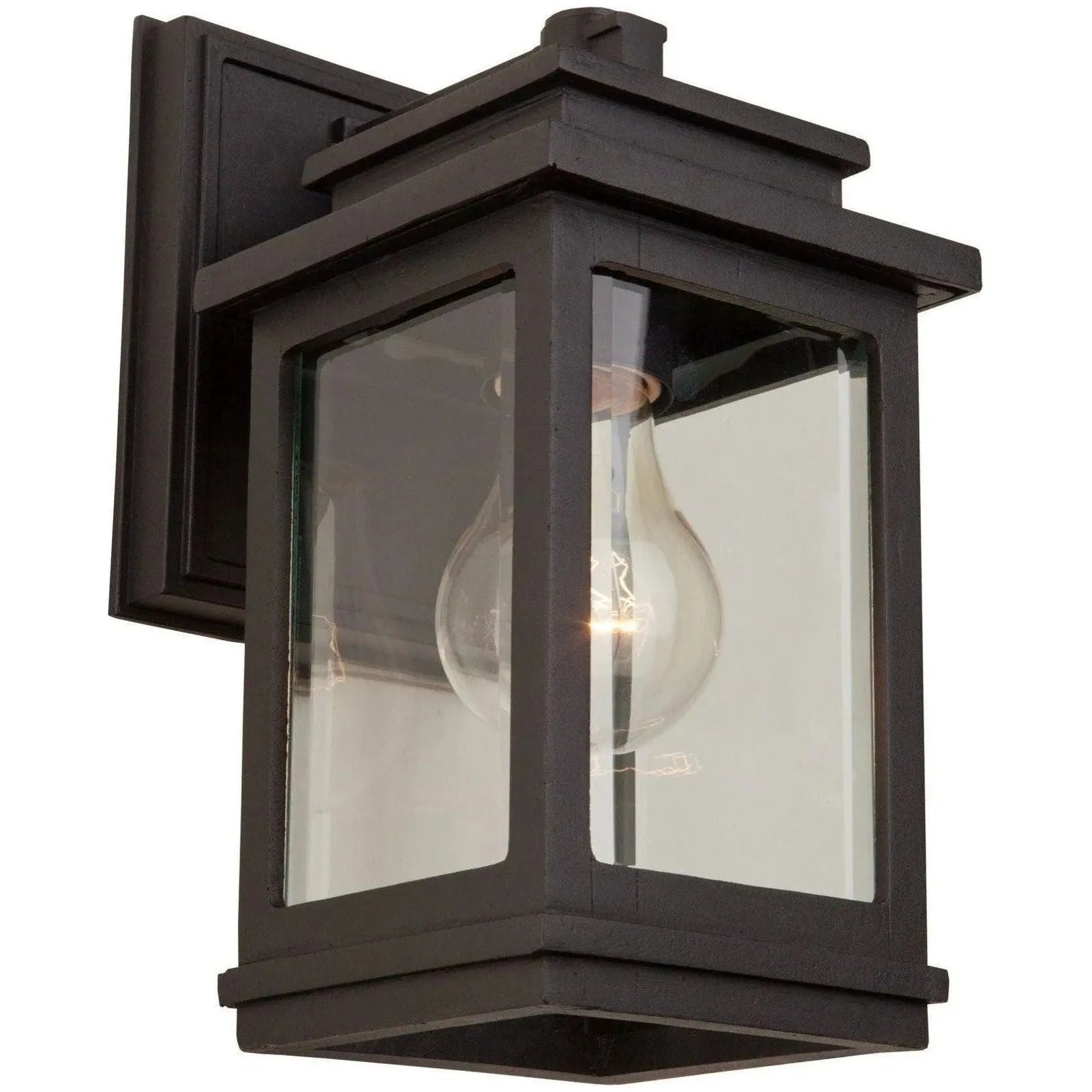 Artcraft Lighting Freemont One-Light Outdoor Wall Mount delivers restrained, contemporary form with purposeful function — clean linear framing surrounds clear four‑side glass to showcase a single exposed bulb and sculptural silhouette.