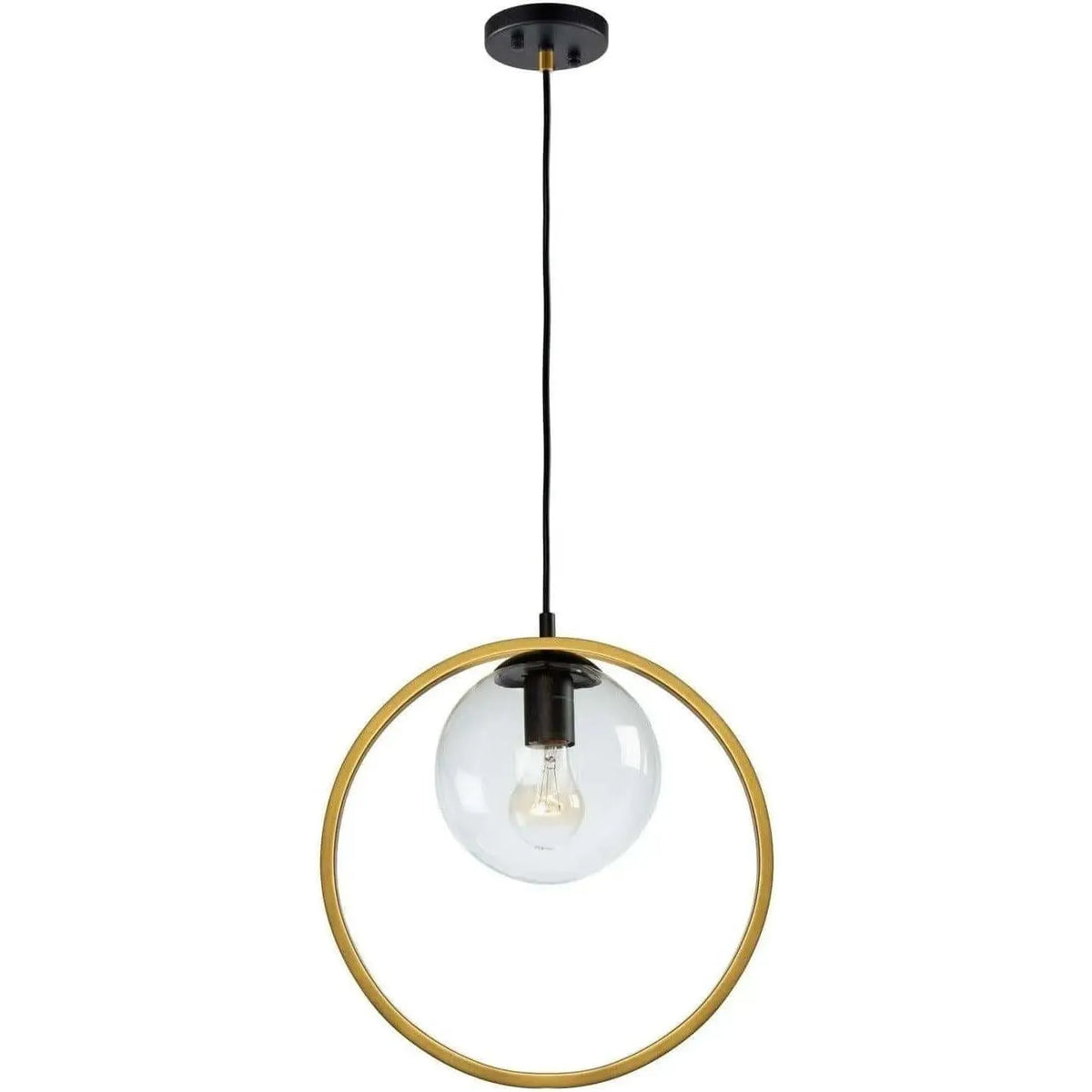 Designed for considered spaces, the Lugano One Light Pendant by Artcraft Lighting balances sculptural form with restrained luxury. A clear glass globe is cradled within a slim vintage-brass ring set against a matte black frame, creating a singular focal point that reads modern yet timeless.