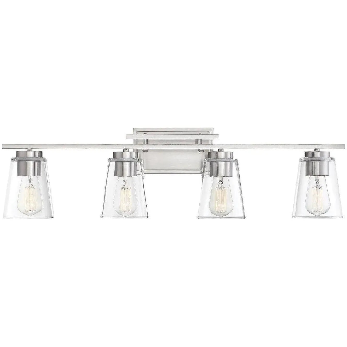 Crafted with precision, the fixture pairs a brushed metal finish and solid hardware detailing for lasting performance. Clear conical glass and exposed-bulb styling give a tailored industrial edge while preserving a minimalist profile—perfect for contemporary, transitional, or pared-back modern schemes.