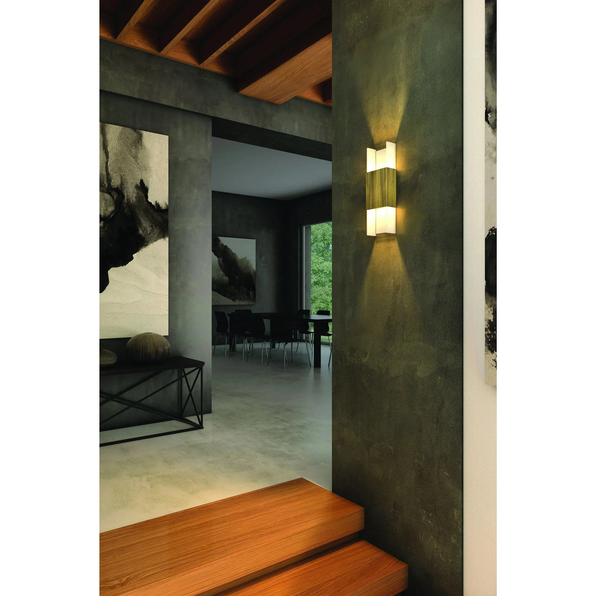Complementing the collar, the light diffusing blades closely attenuate the wash pattern on the wall, producing a soft, even glow that feels both simple and sophisticated.