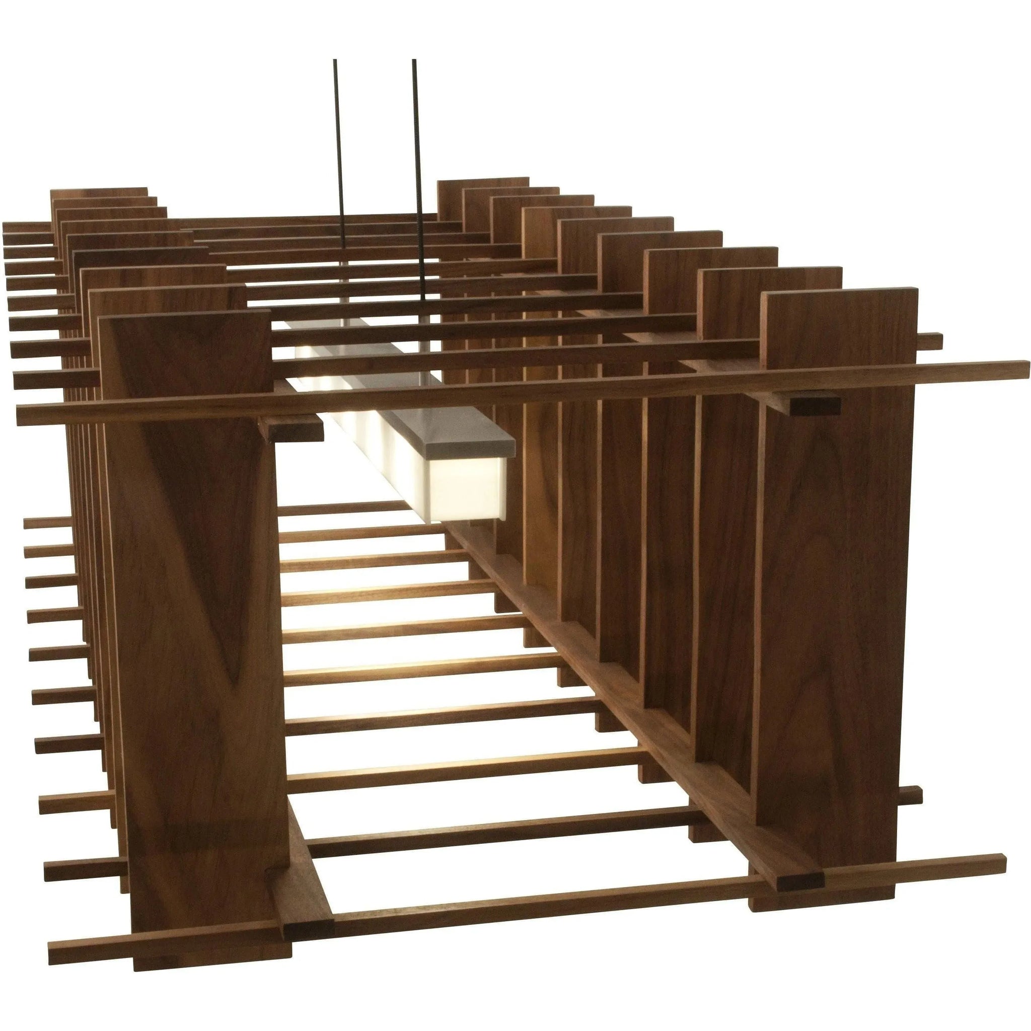 Arca LED Linear Pendant reimagines density and mass in a luminous, sculptural form. Designed to shift with your movement, this fixture reads as a solid walnut sculpture from afar and reveals a slender, radiant bar of light when viewed up close.