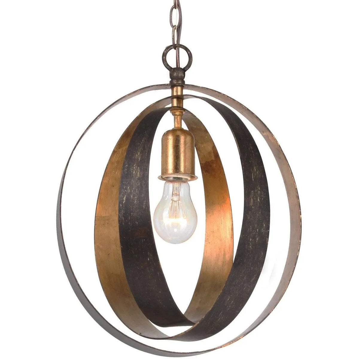 Spheres of steel intertwine creating the industrial Luna collection. A two toned finish allow the orb fixture to glow from within. The industrial wrought iron bring an rustic elegance to any room of the house including a bedroom, living room, dining room, or even over a kitchen island!