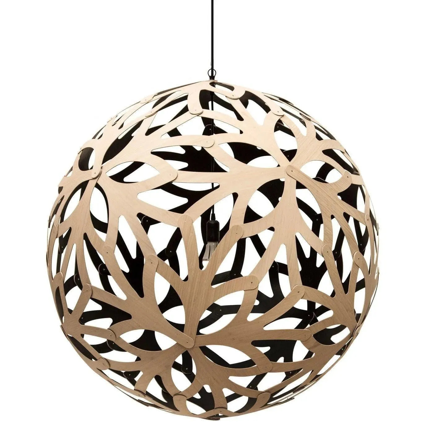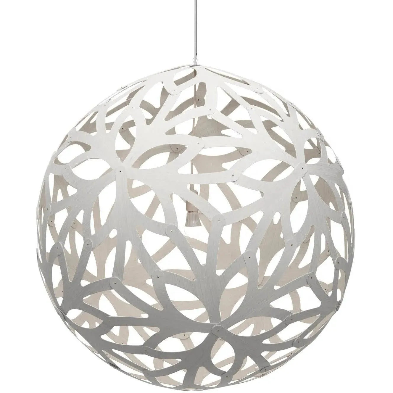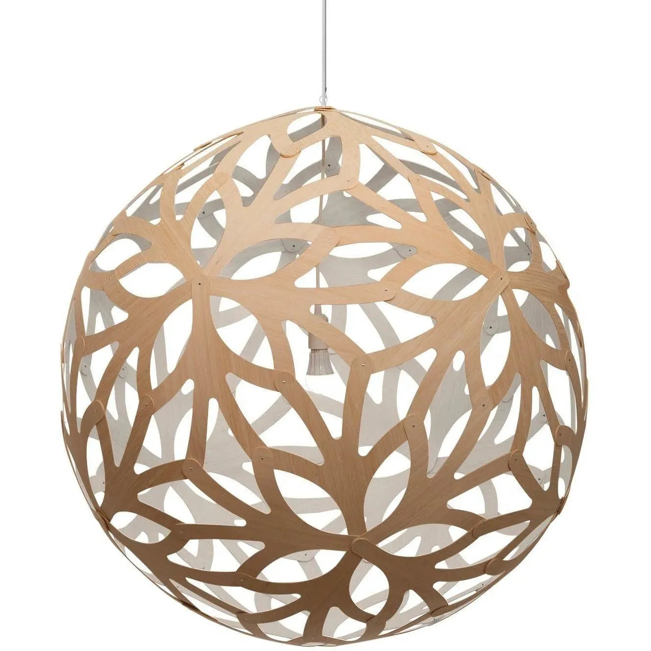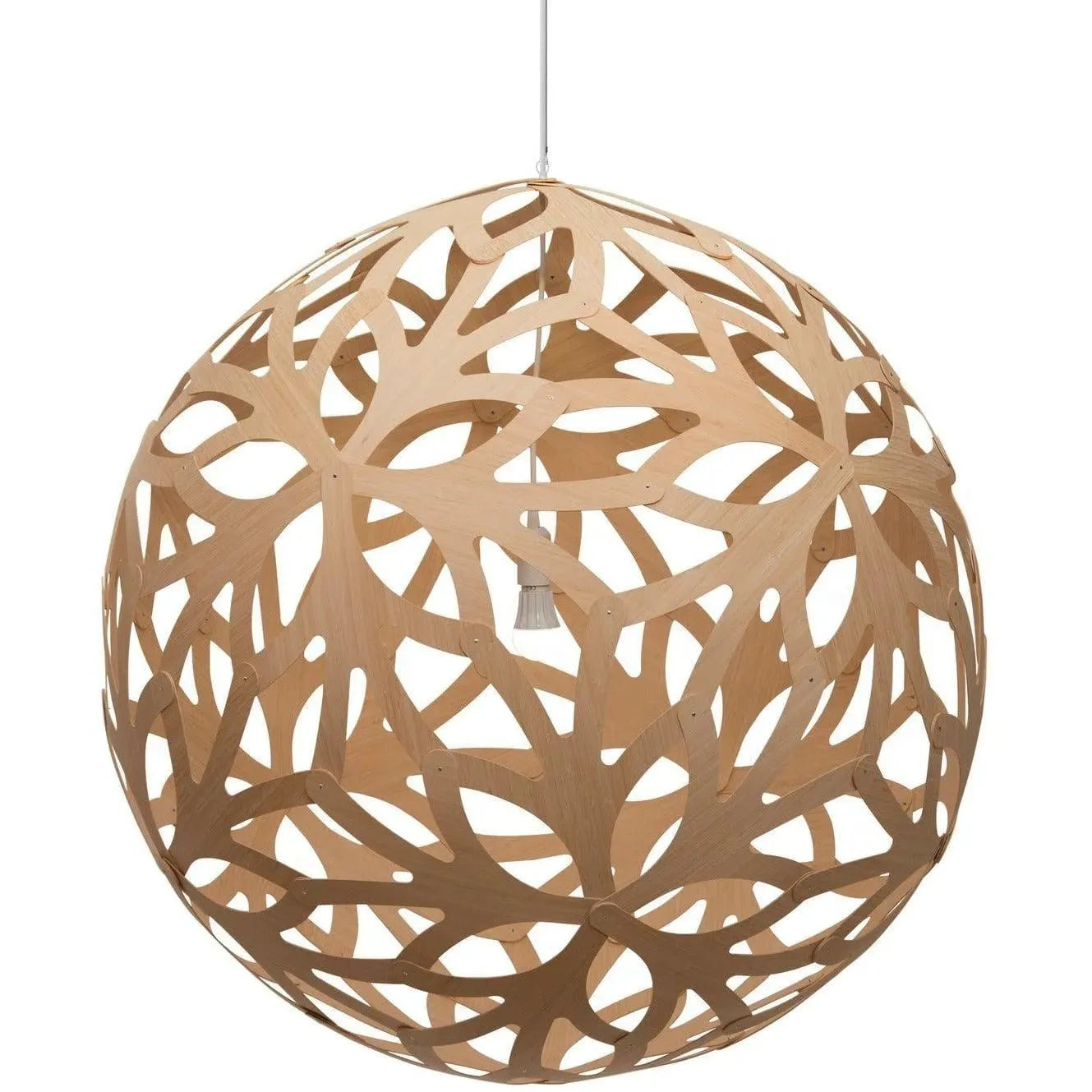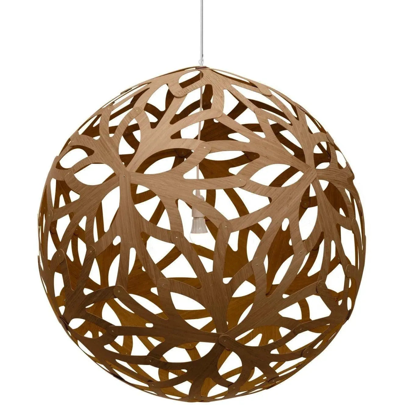 Decorative pendant light by David Trubridge Design. The curvy cousin of the Coral, the Floral fixture reveals stunning flower shadows when illuminated to bring project nature on surfaces in the space.