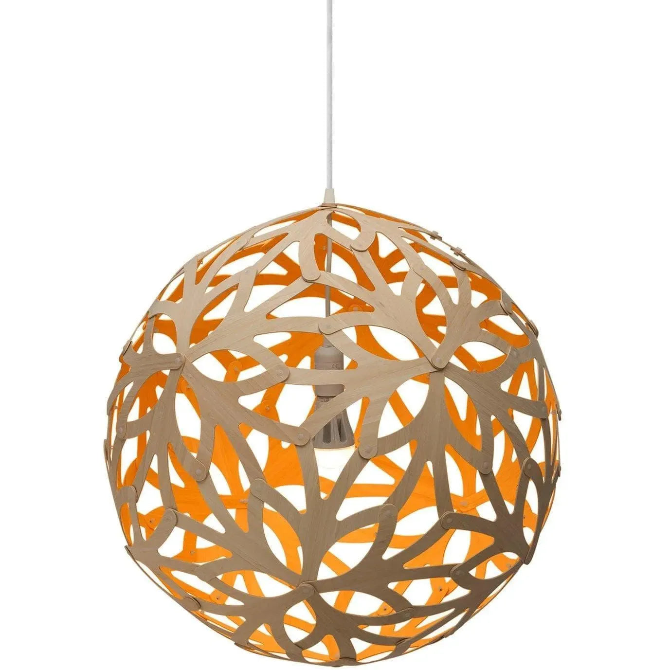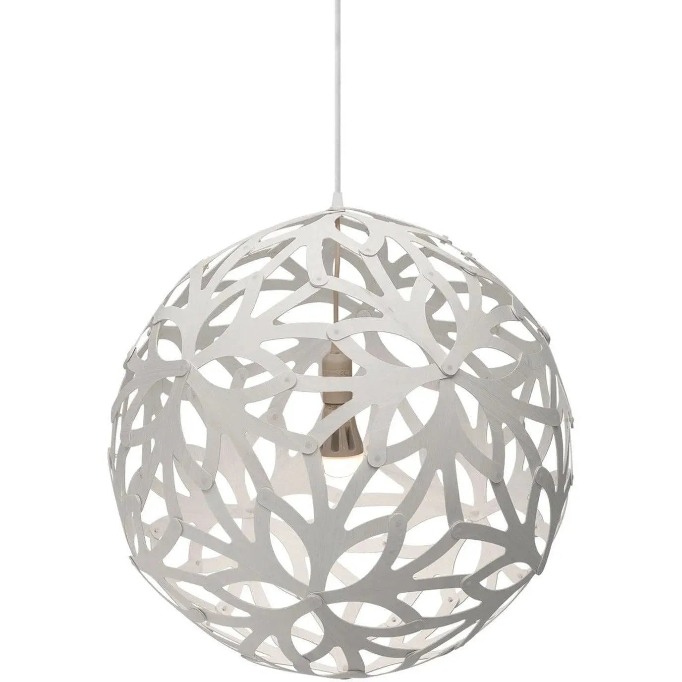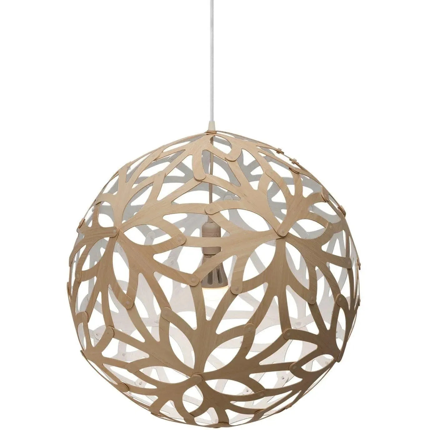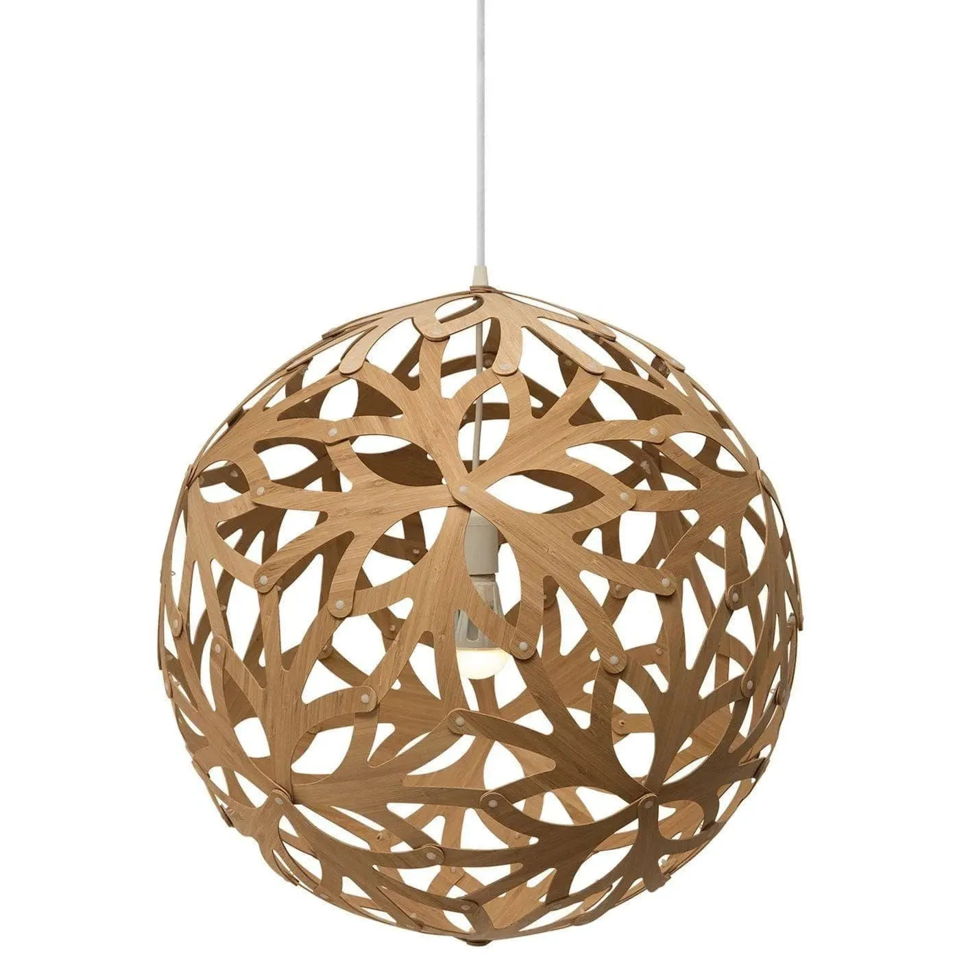 Decorative pendant light by David Trubridge Design. The curvy cousin of the Coral, the Floral fixture reveals stunning flower shadows when illuminated to bring project nature on surfaces in the space.